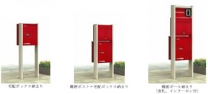 ●郵便ポストやインターホンと宅配ボックスの一体型の機能ポール納まり