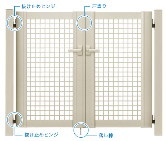 2020/07/25YKKap シンプレオ 門扉 こんにちは(^^♪ 今回は、YKKapの「シンプレオシリーズ」の門扉の ご紹介です。 特徴は・・・ 抜け止めヒンジ 防犯性に配慮し門扉を抜けにくくしています. 戸当り 左右門扉のすき間を隠し道路側からの一体感を高めます。 落し棒 5mm刻みにロックできるので敷地条件に合せて調節できます。 デザインも豊富にあるので、お家に合ったもので選べます。 ご用命は、リバーフォレストまで~