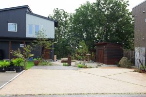 さらにシンボルツリーにLEDスポットライトを当て、夜を楽しめるデザイン外構に仕上げ、