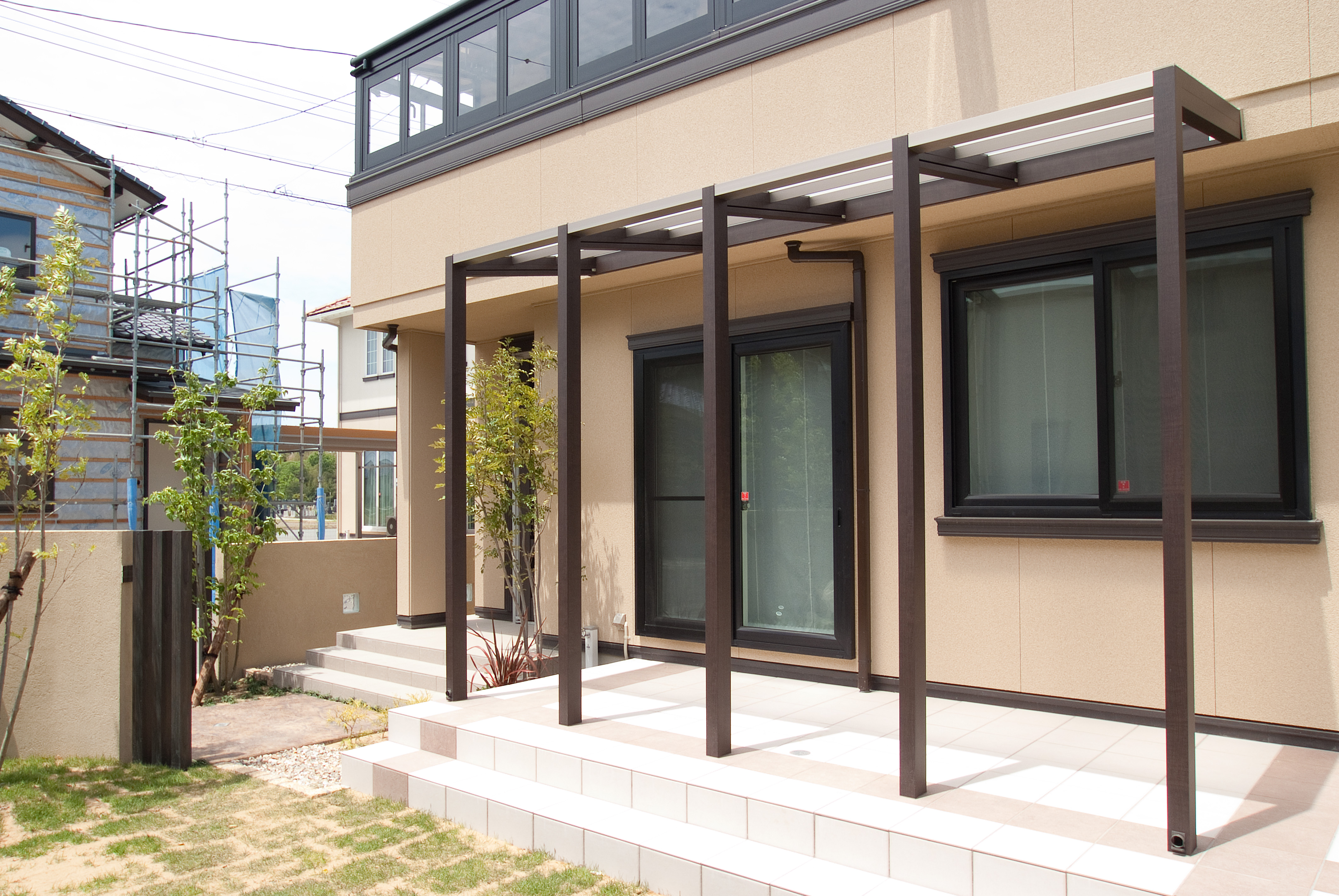 また、木調アルミ柱と木調アルミテラス がアクセントになっています。
