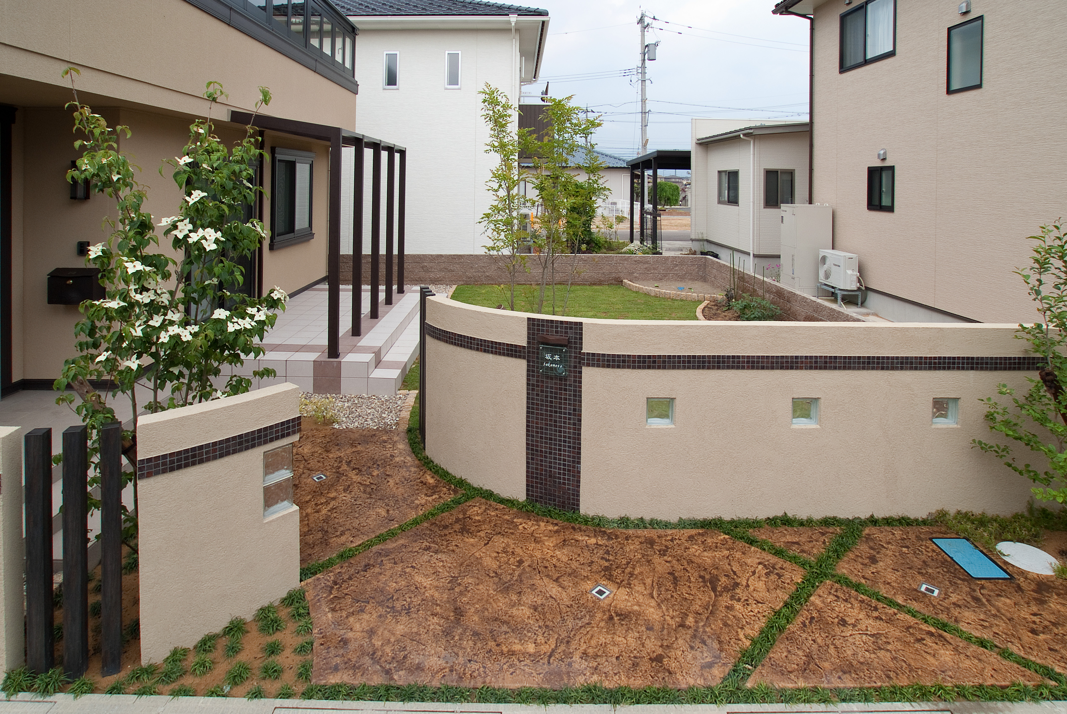 シンプルで落ち着いたイメージの住宅でしたので、塀は高すぎず低すぎず、お家の外壁に合わせたぬり壁にし、
