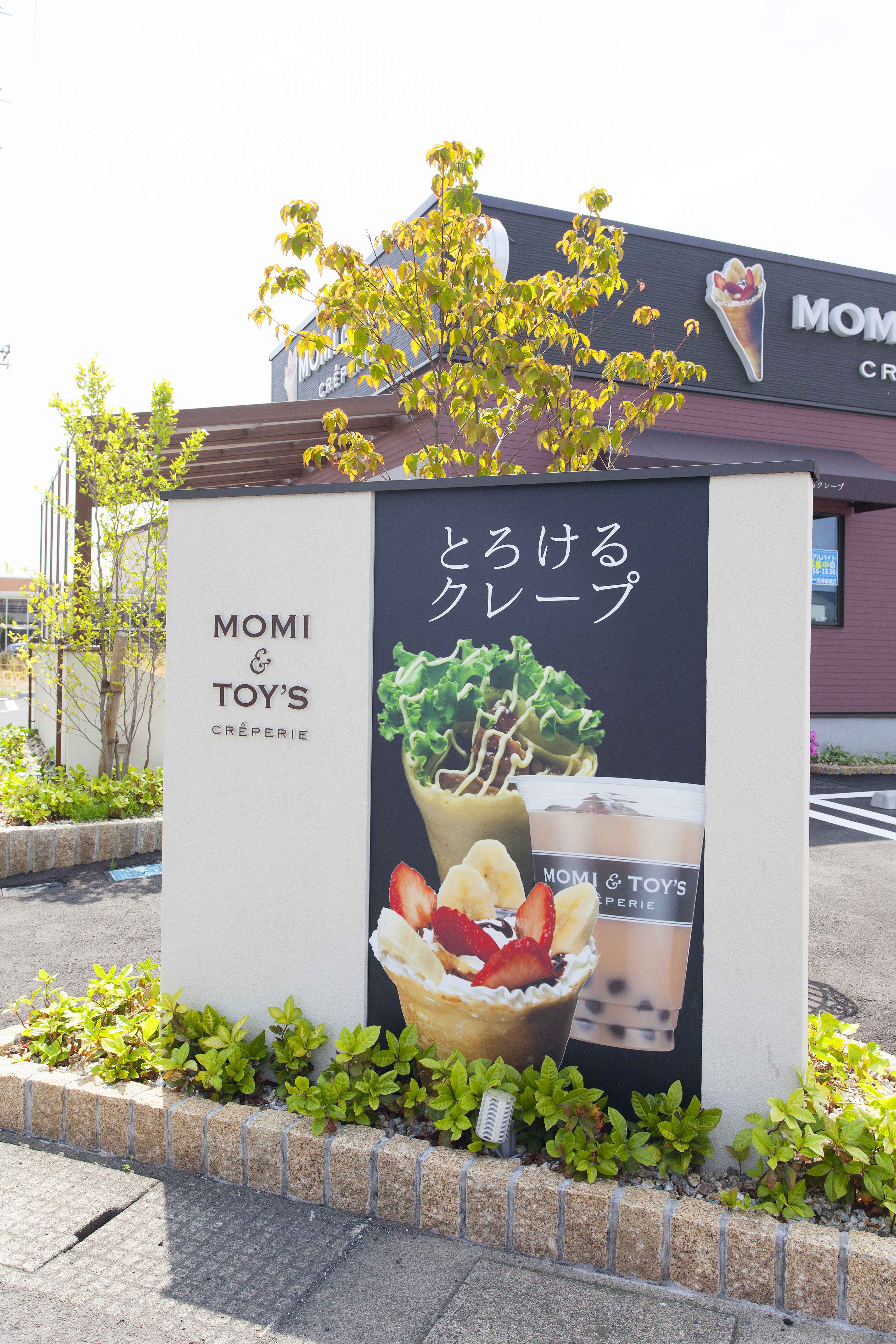 塗り壁のモニュメントには切り文字でお店の名前と看板を設置。