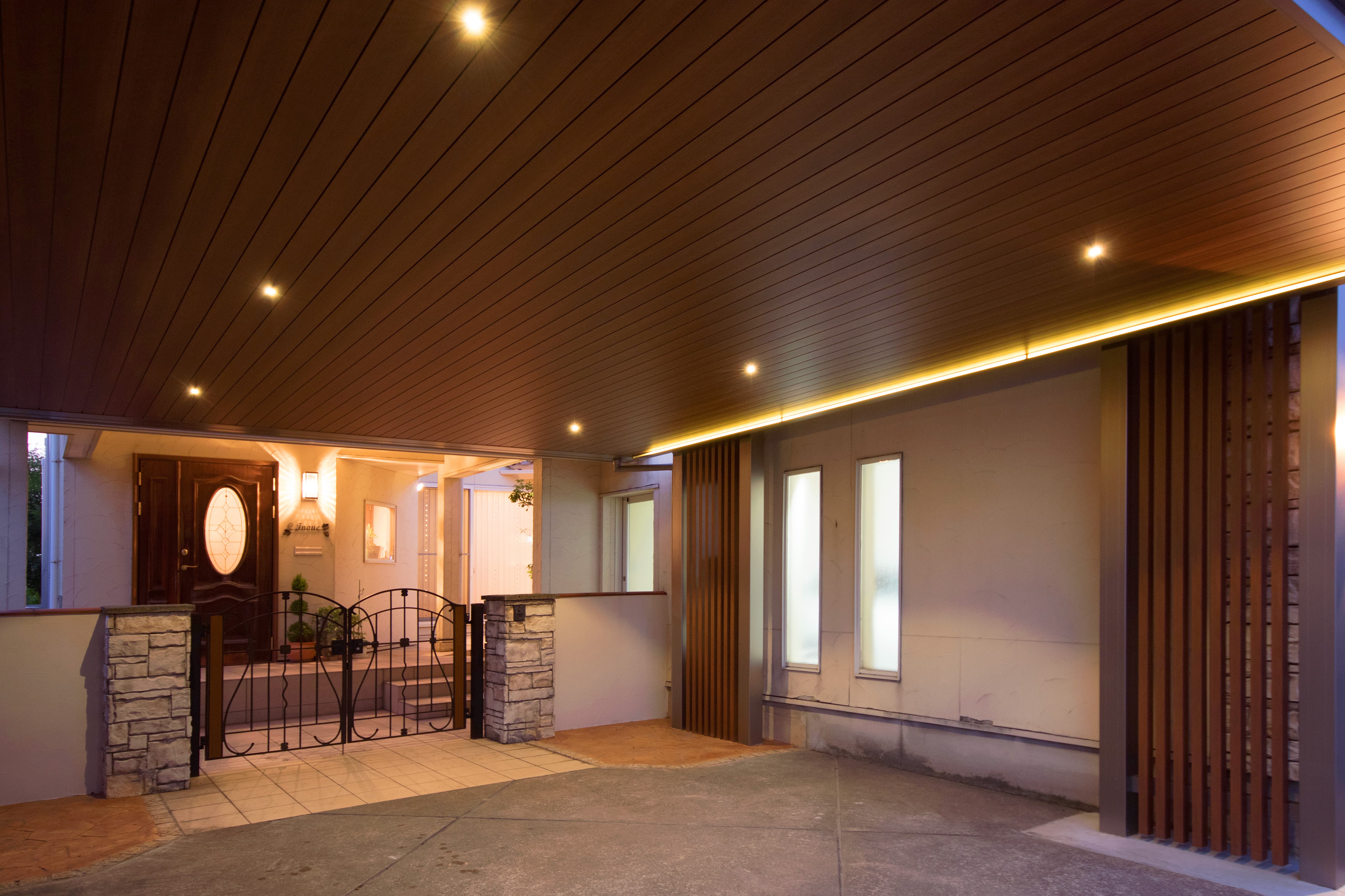 オプションにて、天井にダウンライトやスリットライトも追加し夜でも魅せるカーポートが完成しました♪(*'▽')