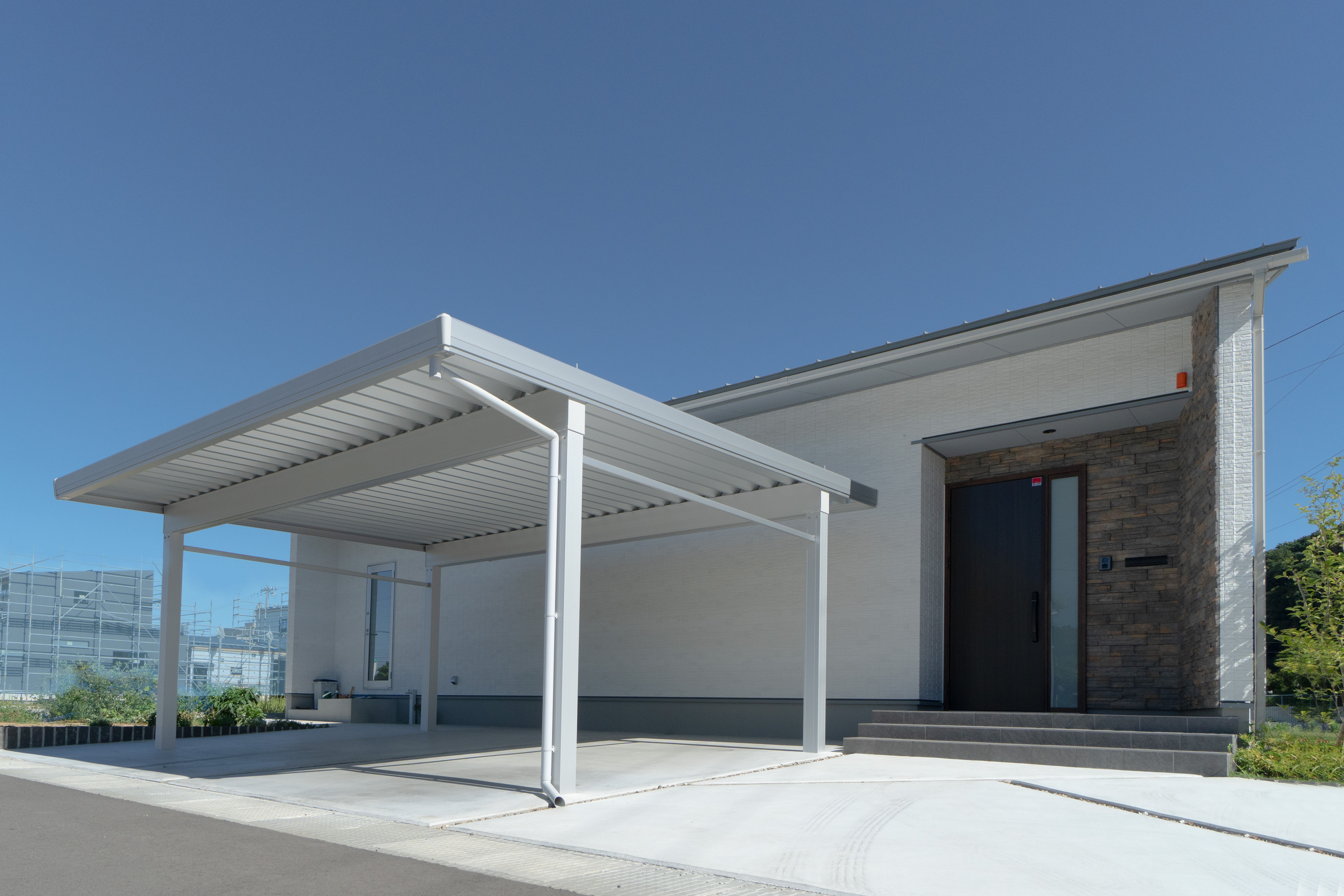 お家の色合いに合わせたカーポートに緑が爽やかですね。