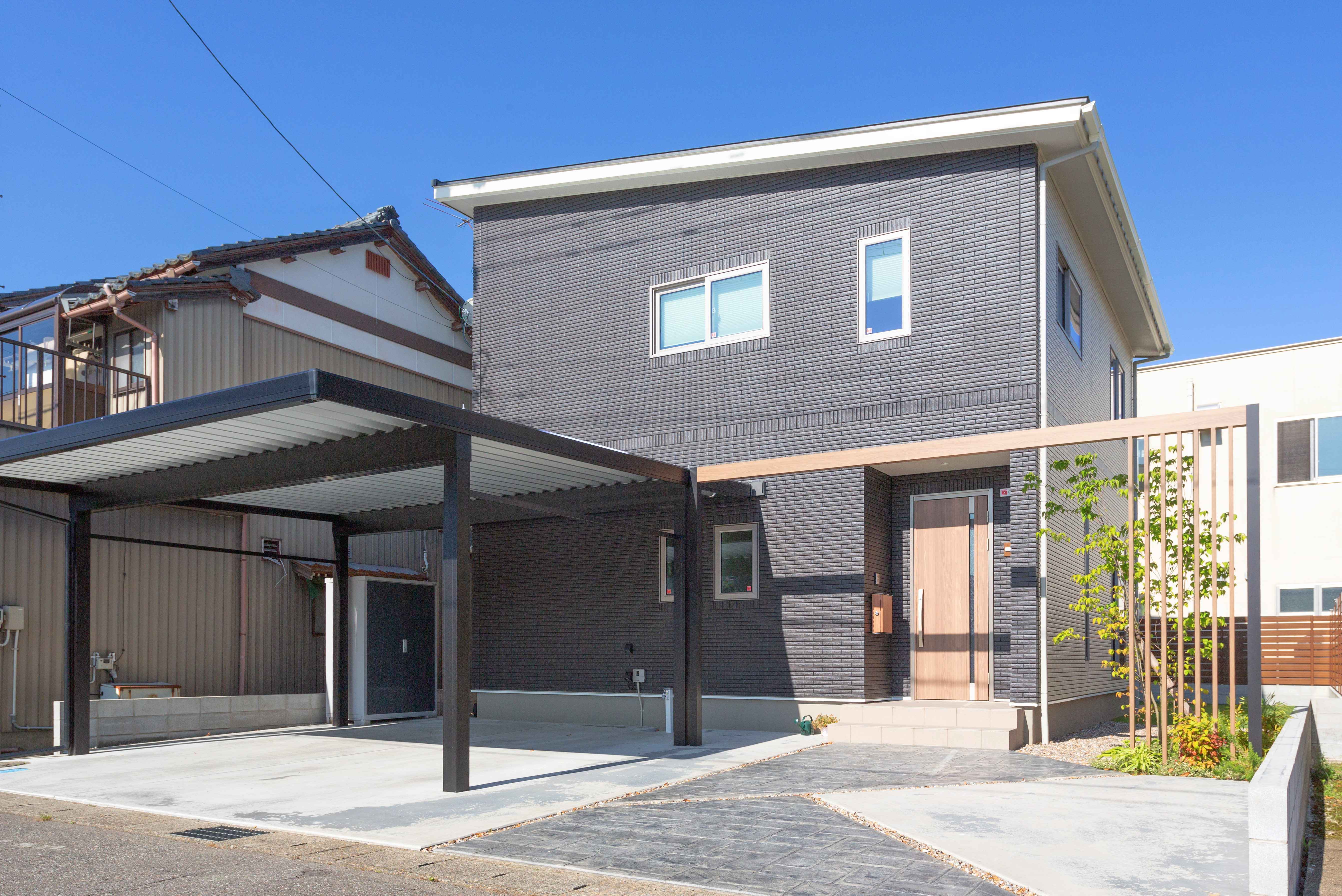 シンプルながらも玄関ドアと建物とマッチングした飽きのこないファサードに。
