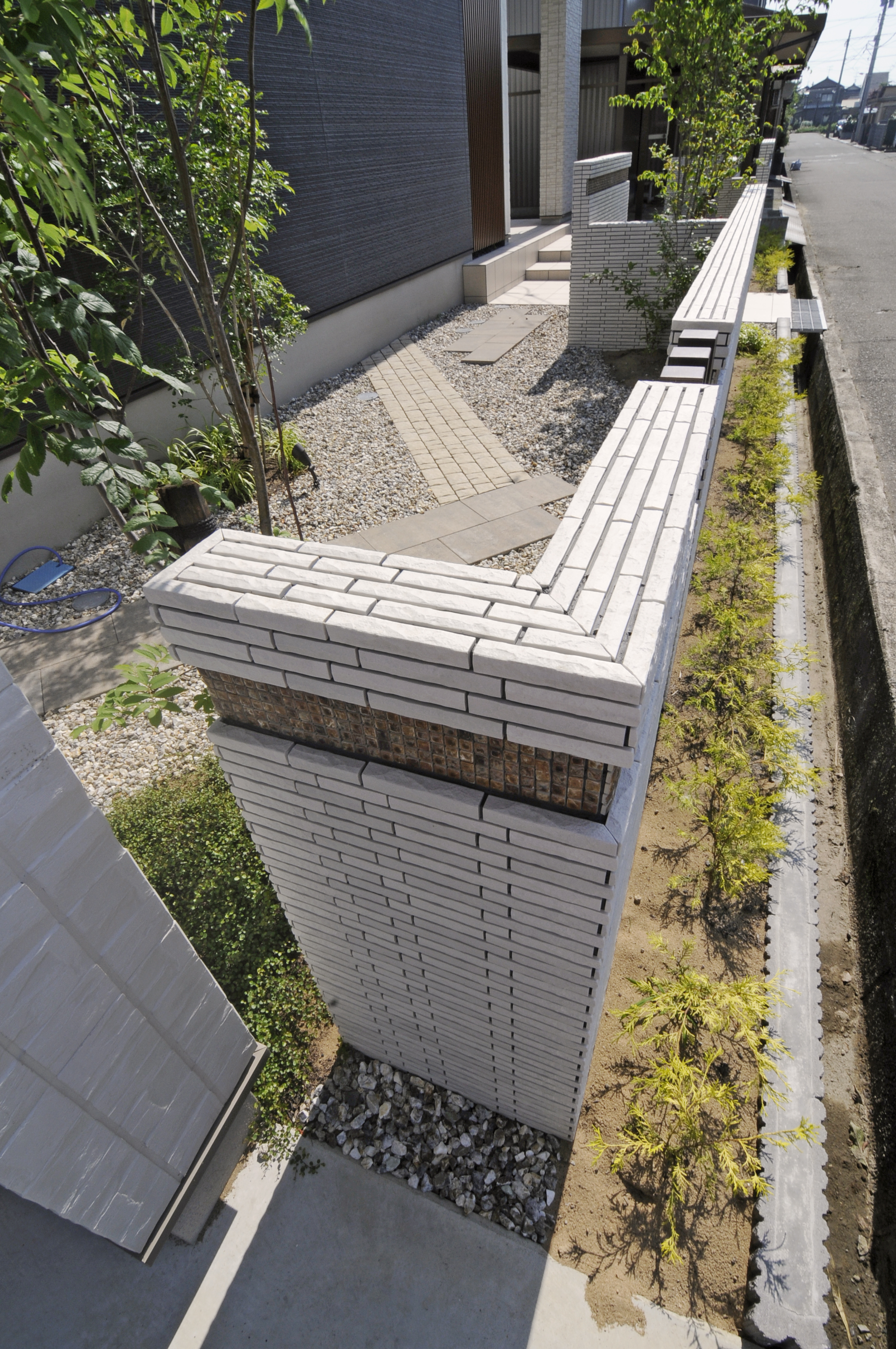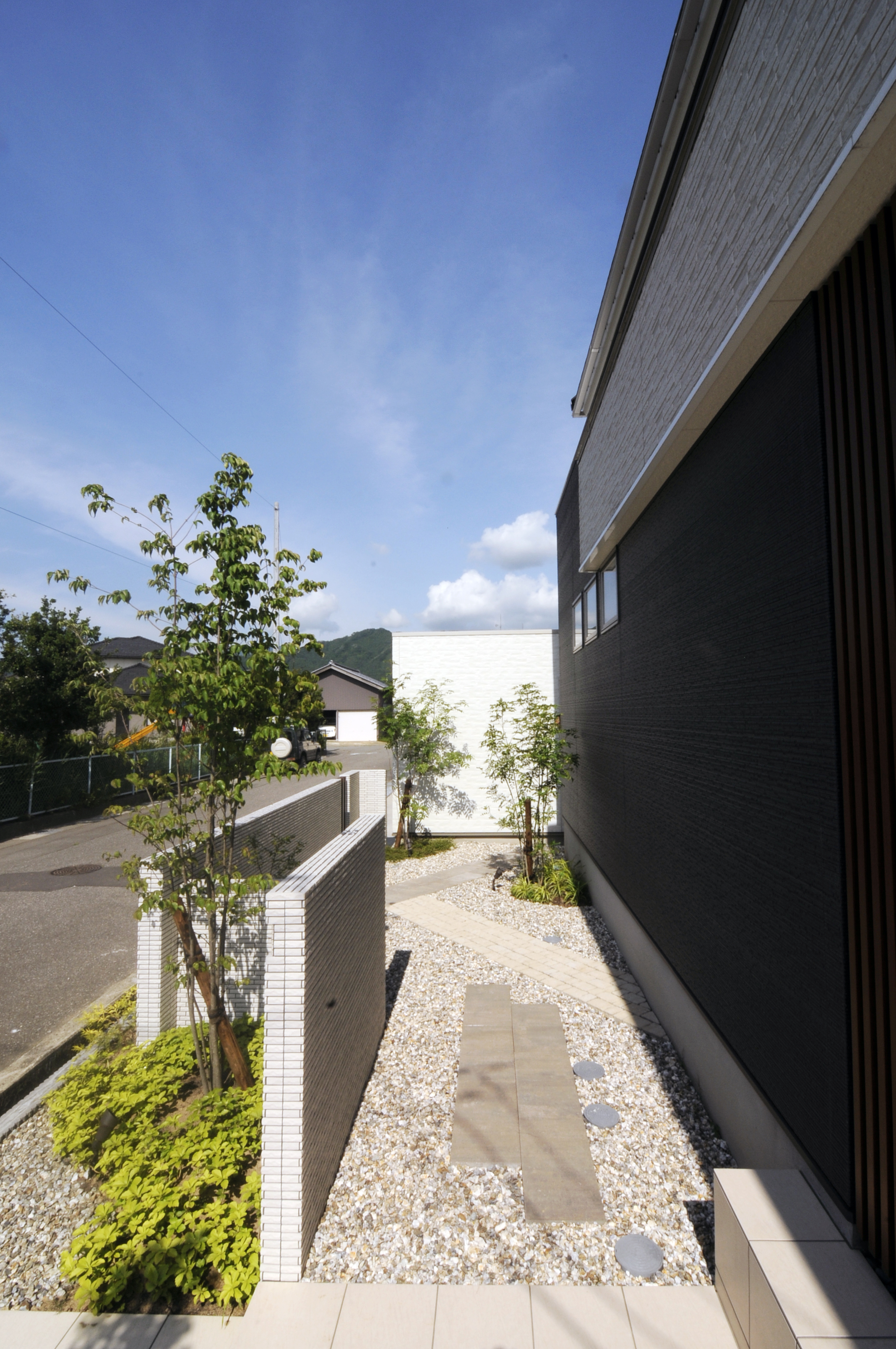 奥行きをつける事で遠近感が出て前庭が広く見える様デザインしました。