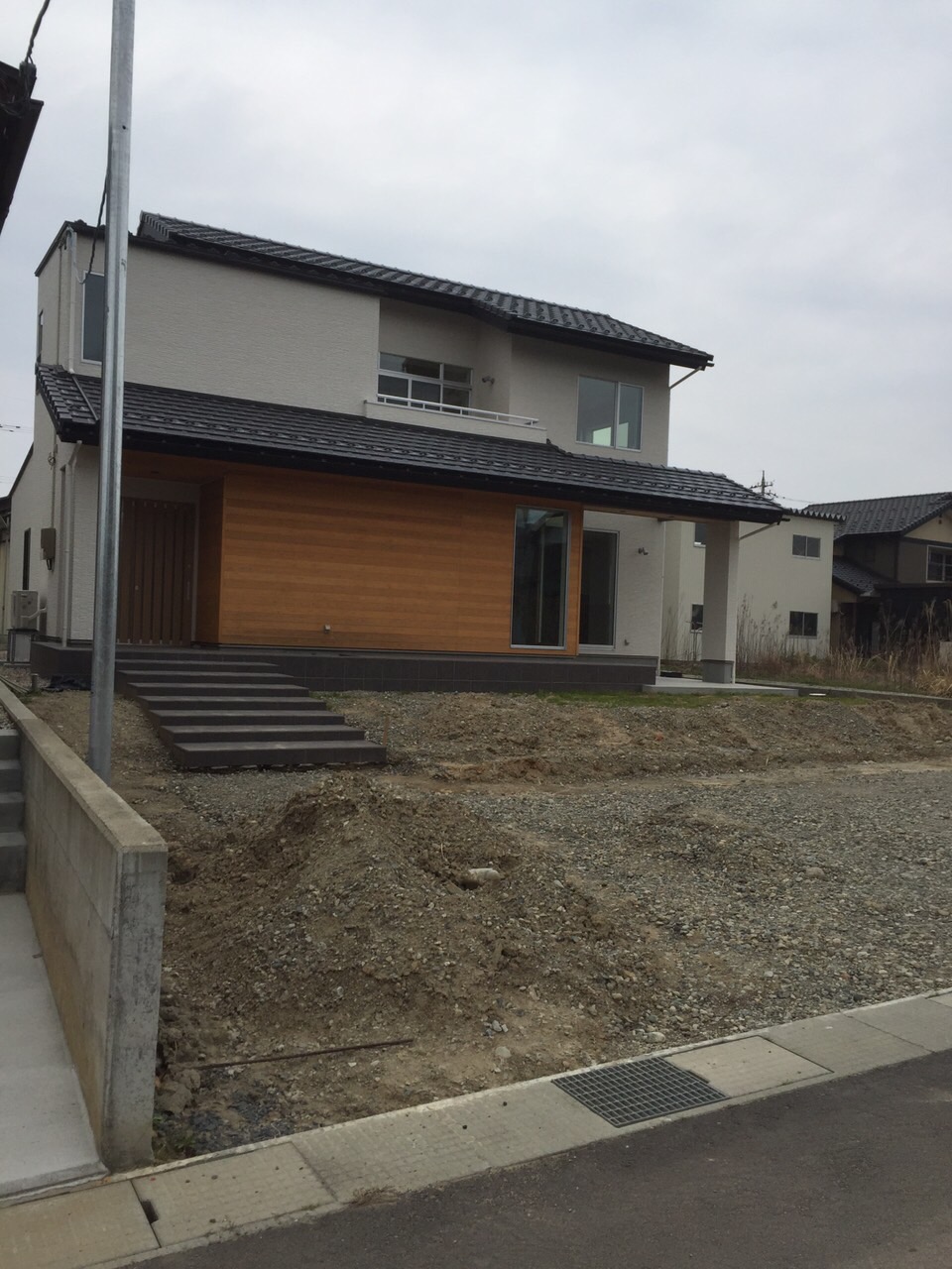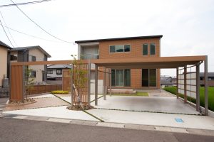エントランスと車庫、フェンスとも明るい茶色で統一して、まとまったクローズ外構の完成です♪