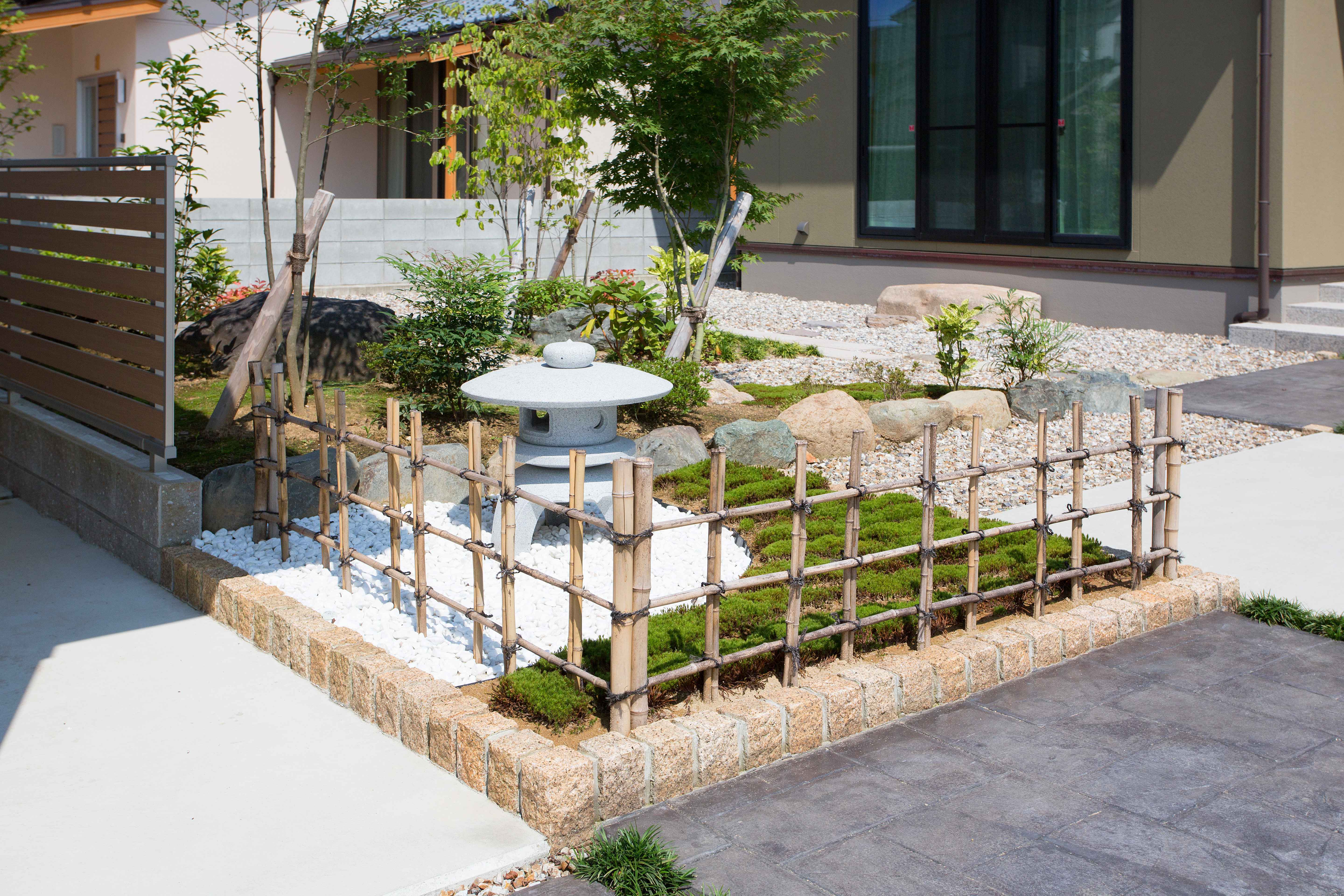 アルミとナチュラな木目のフェンスはモダン和風の庭にぴったりです。