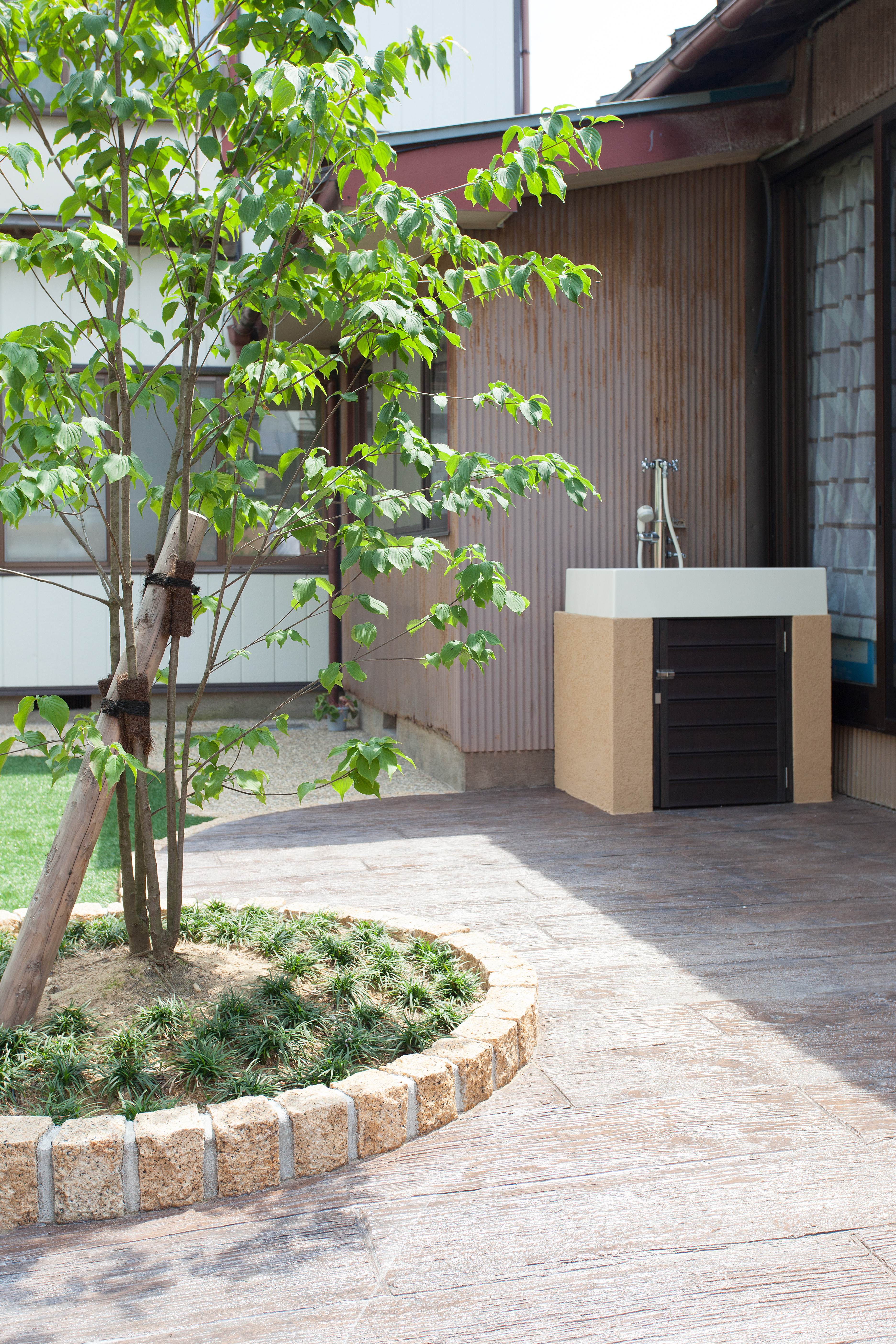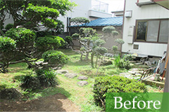 元々あった和の庭園の植栽や、壁のブロックを利用したリフォームガーデンです。