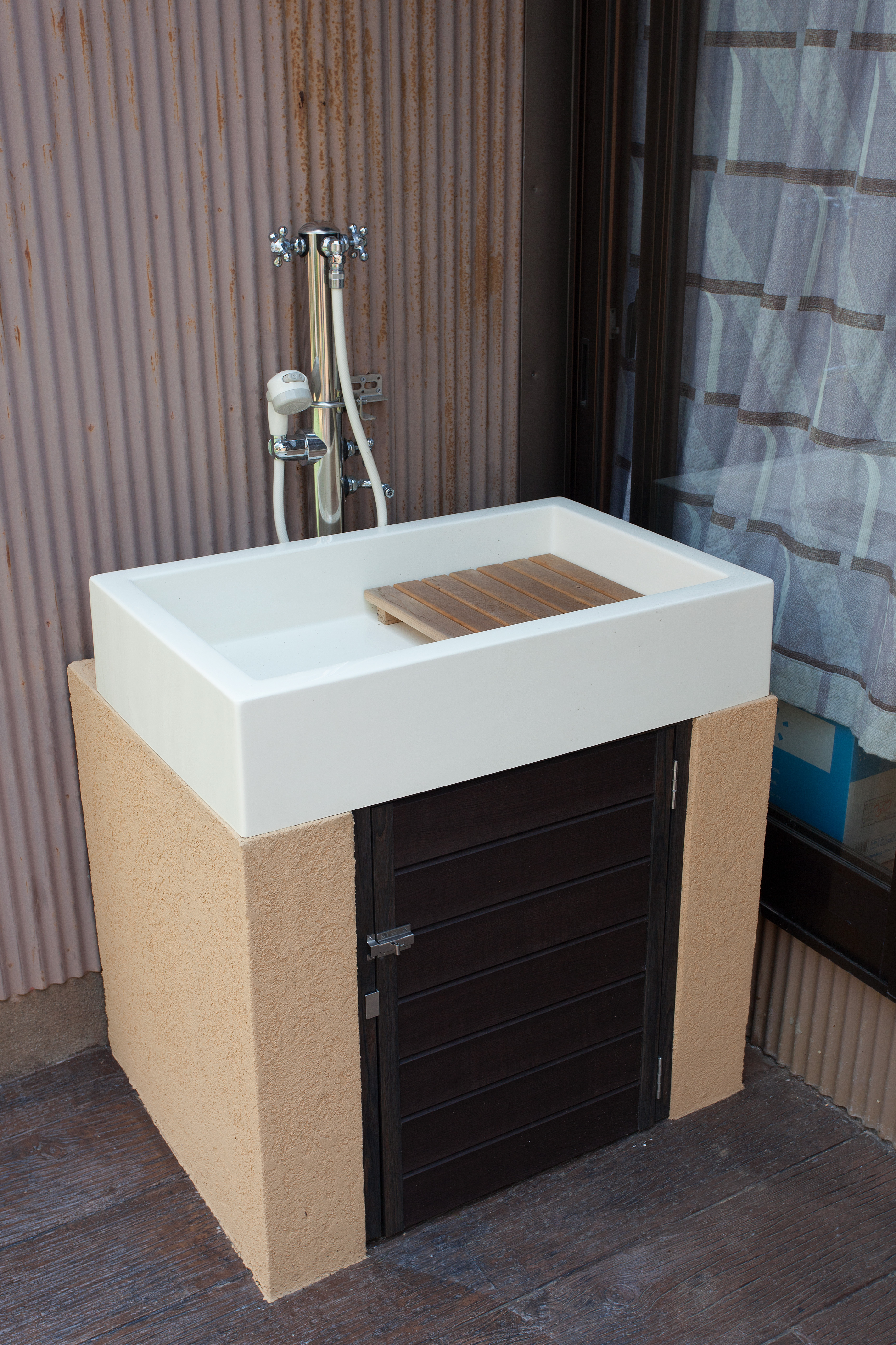 遊んだ後や、自宅での洗い場も設置。ワンちゃんも清潔で喜びます。