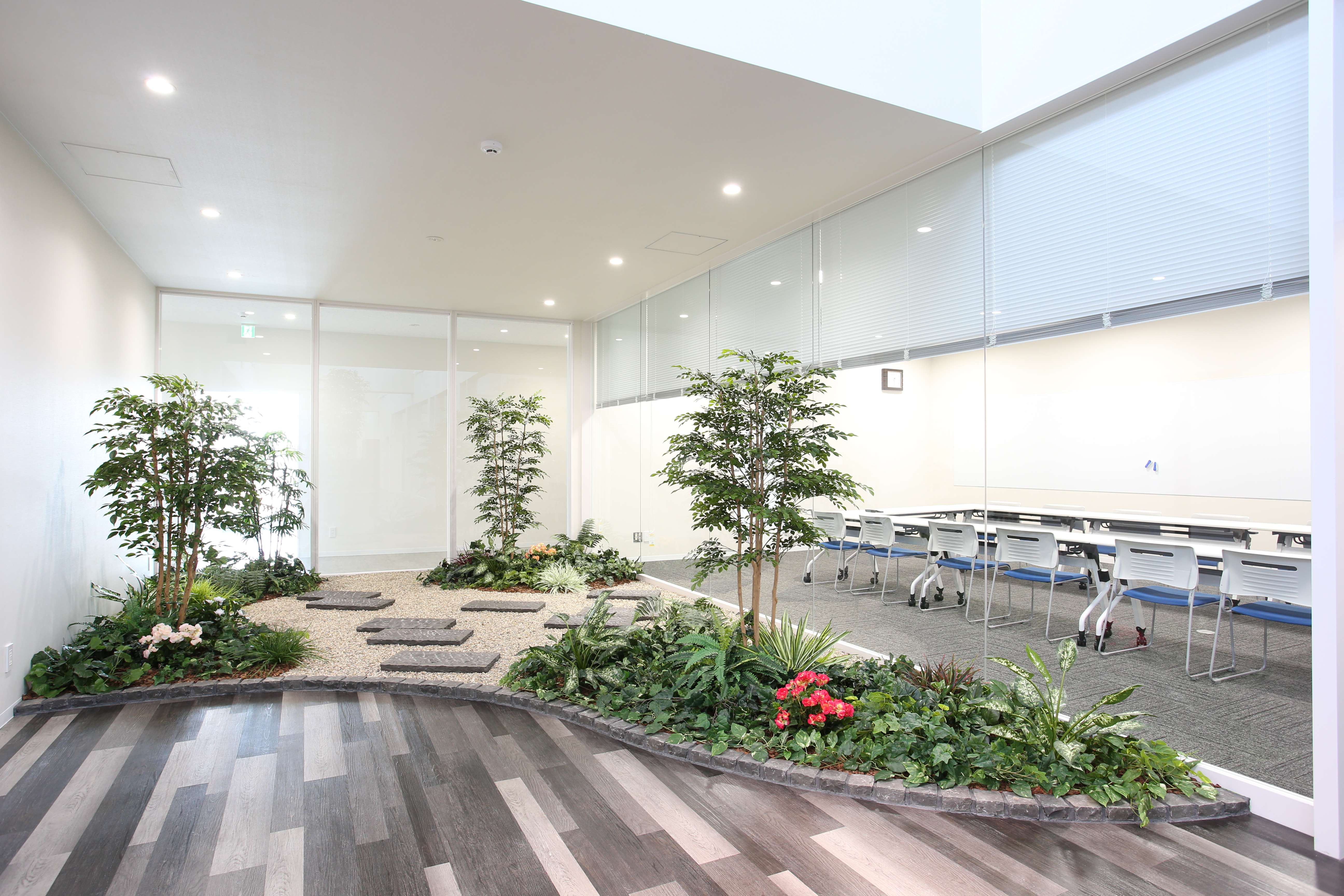 社内の会議室前のスペースにも、人工植物にて空間づくりをしました。