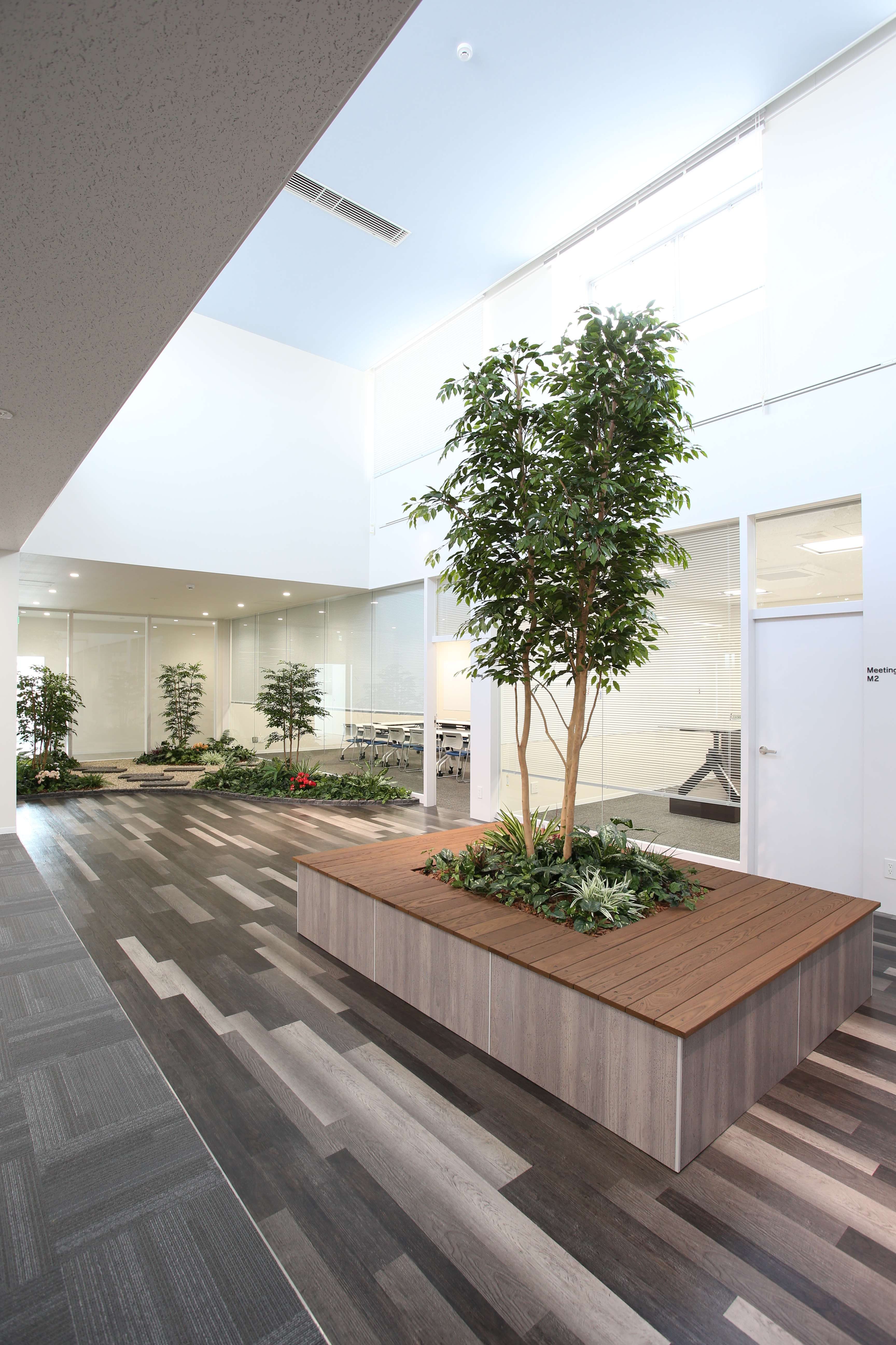 のびのびとした高木が明るい空間にひときわ映えて癒されます。