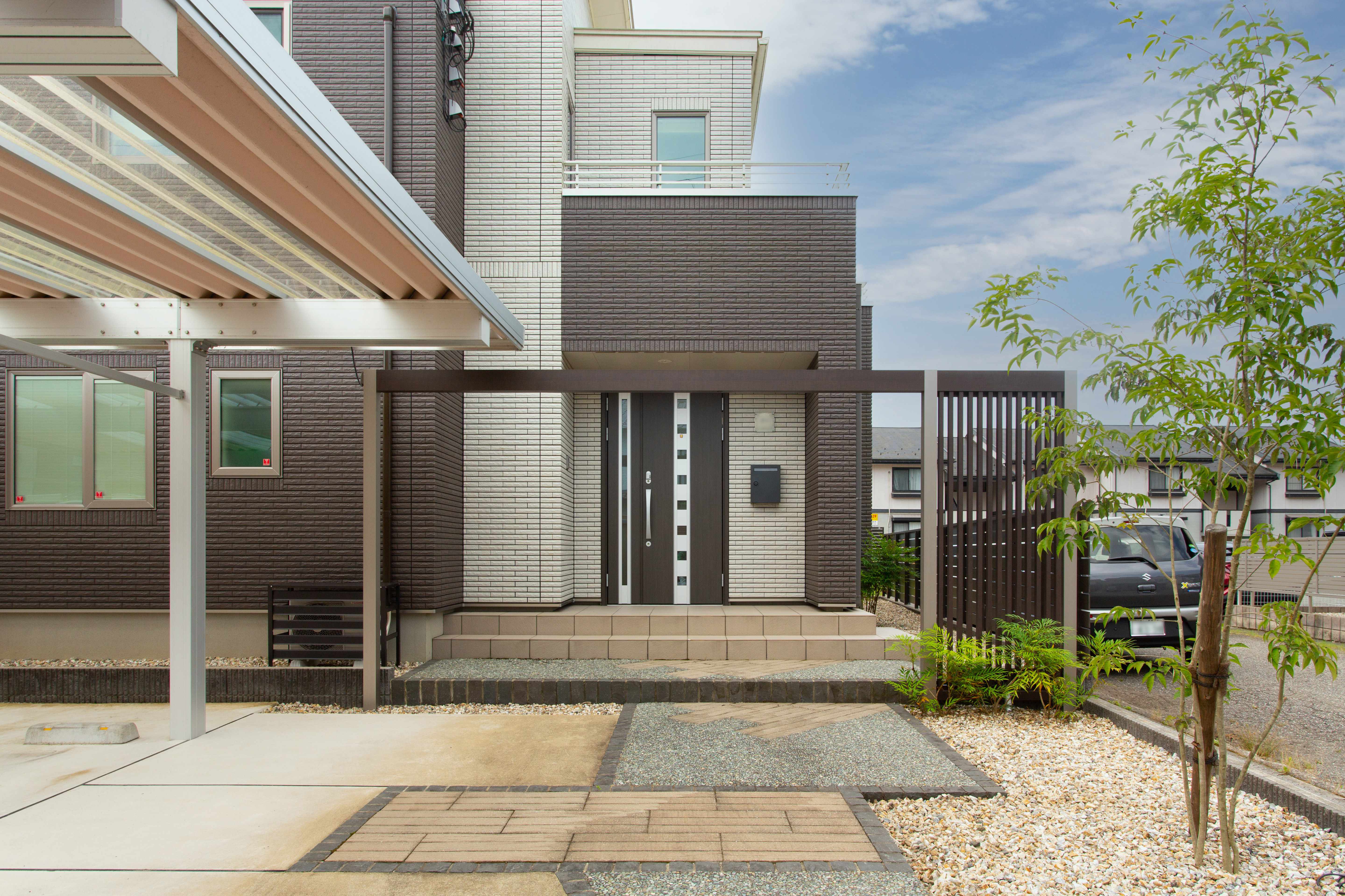 エントランスは既存物とのバランスを取るため、+Gの縦格子ゲートを設置。