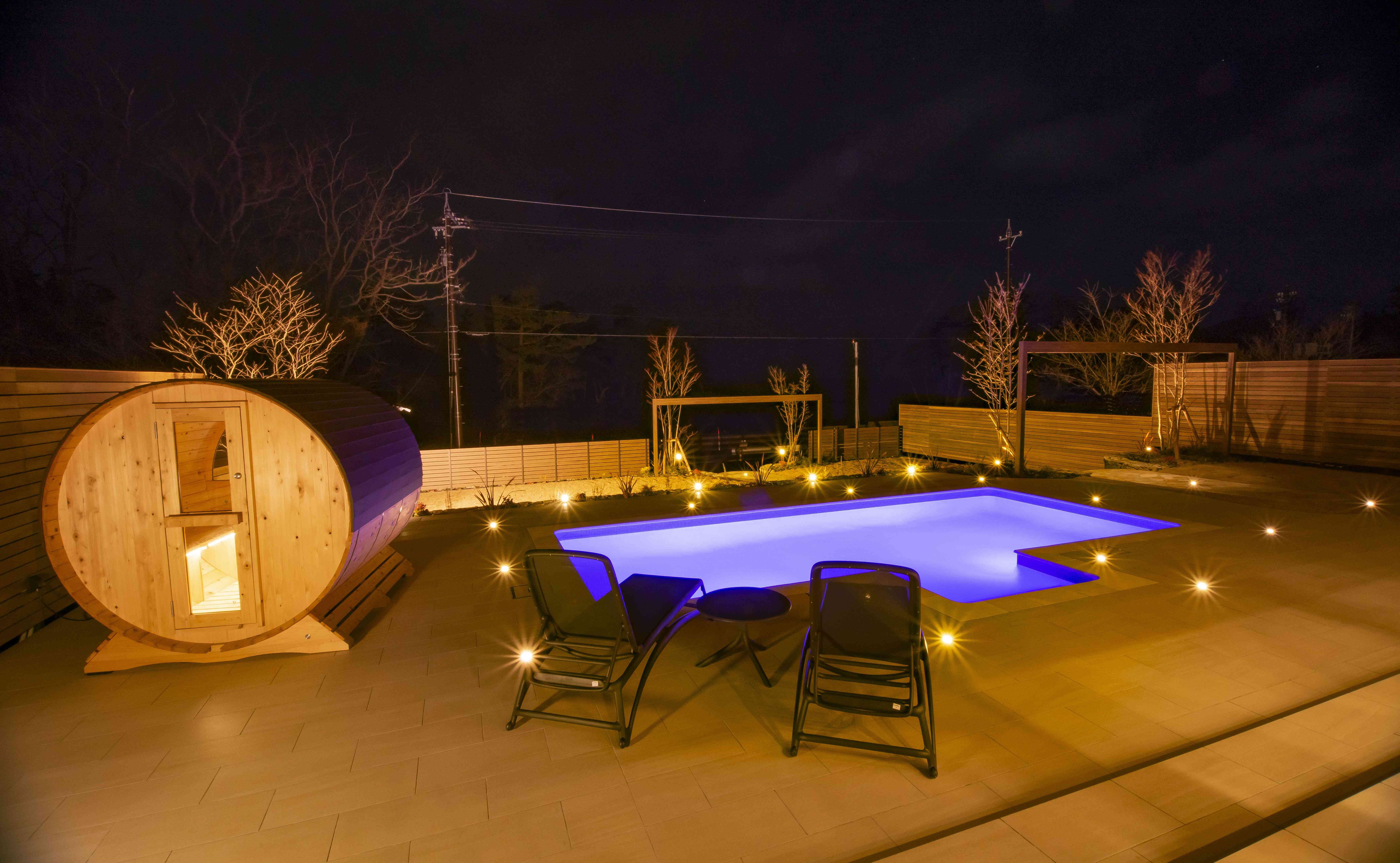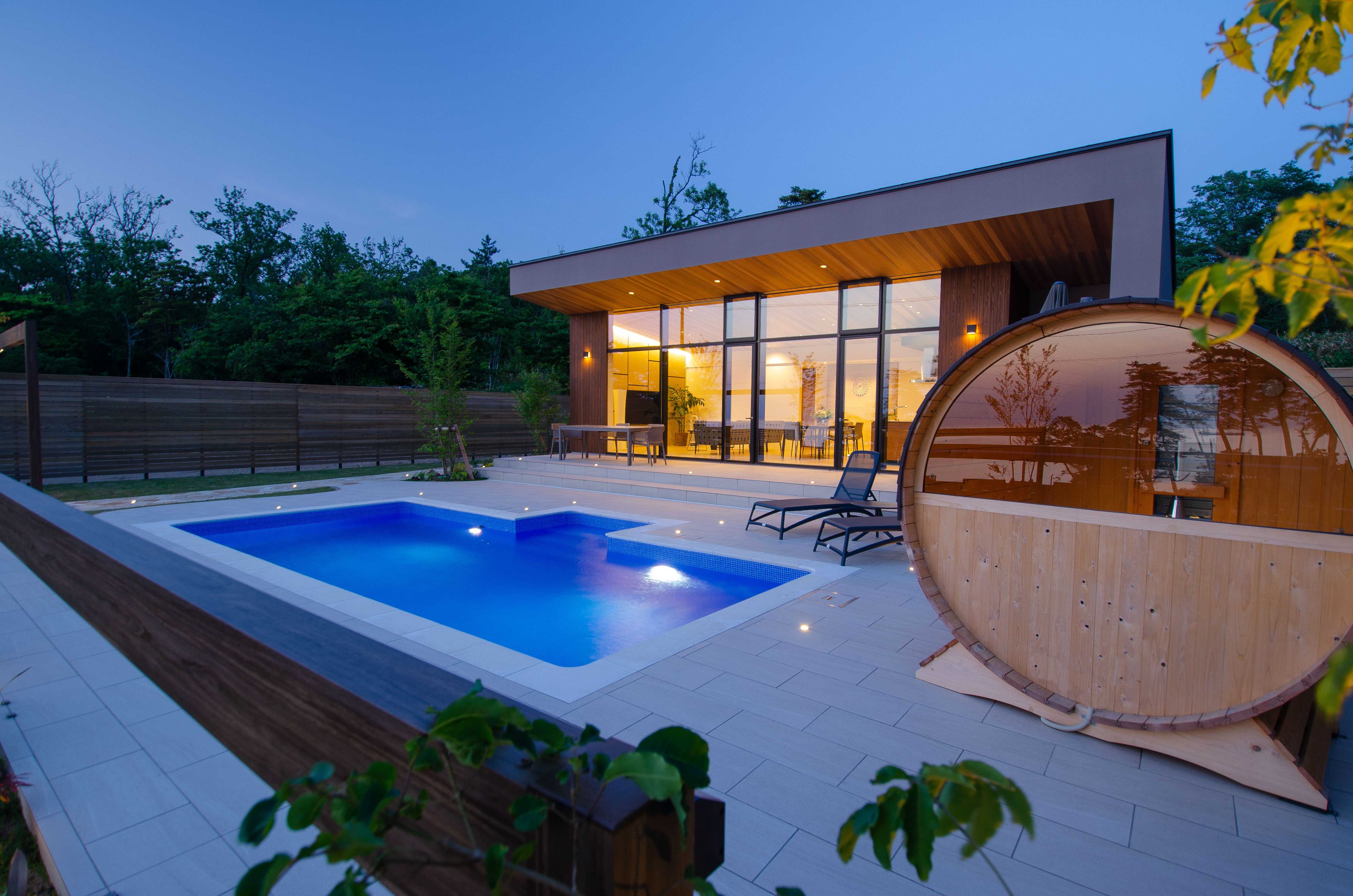プライベートプール・プライベートサウナを完備し、ゆったり景観を楽しんでいただける貸別荘です。