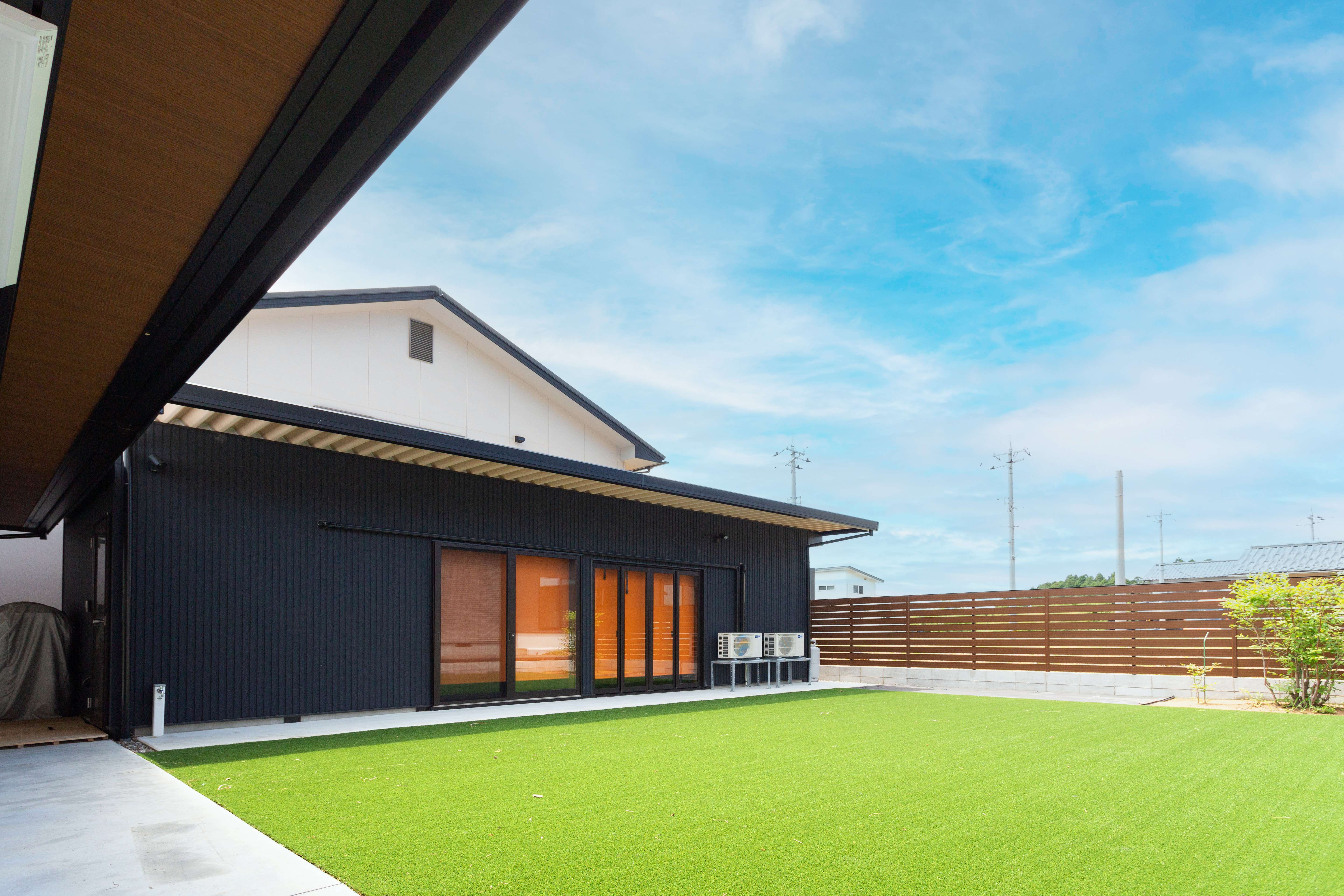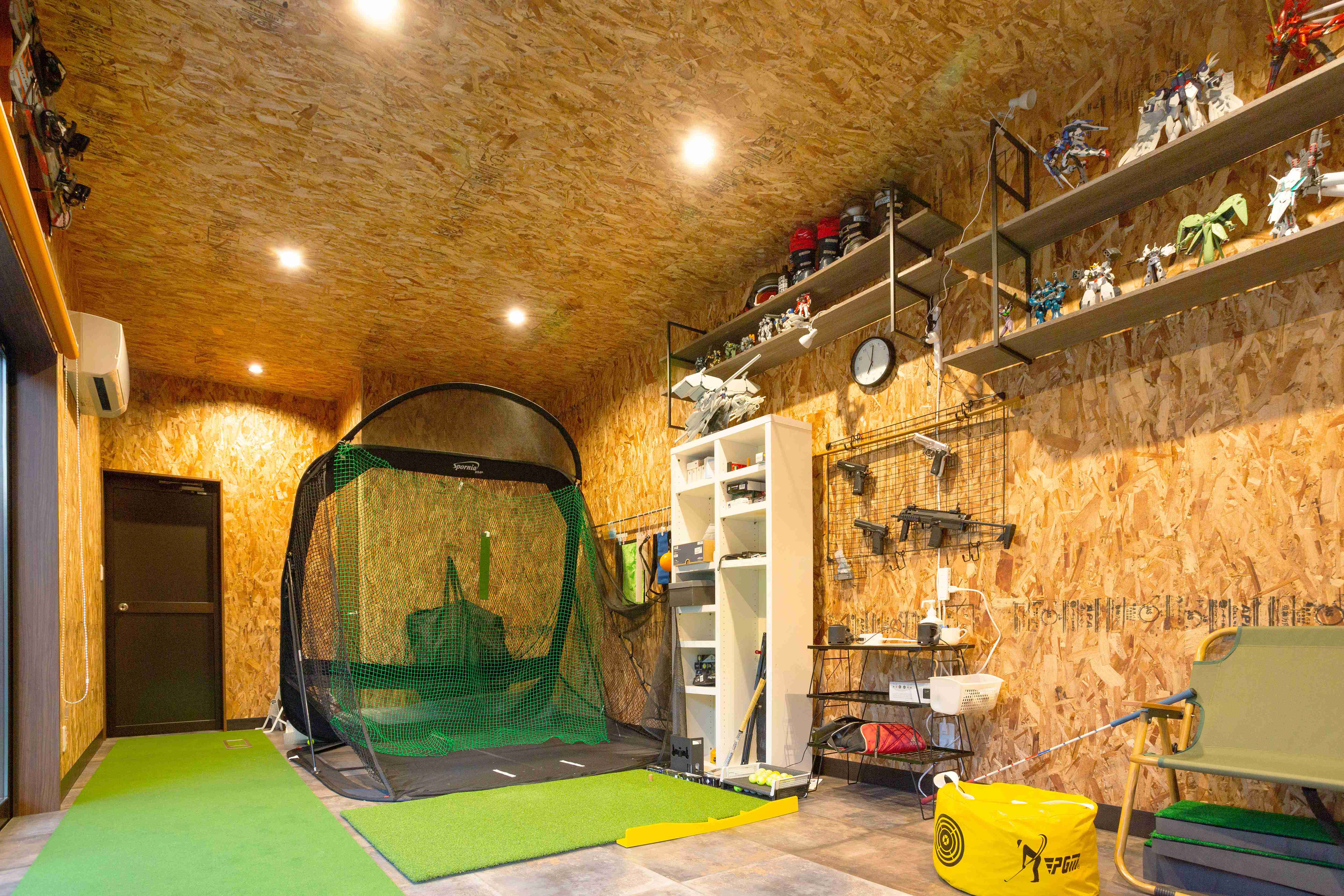 大人の趣味のスペースを造りました。 熱材とOSB合板で囲い、トイレ・シャワー・ミニキッチンなども完備。 パーティールームとしても利用可能です。 広い人工芝スペースでは娯楽やスポーツも可能。 普段は手間いらずな空間をつくりました。