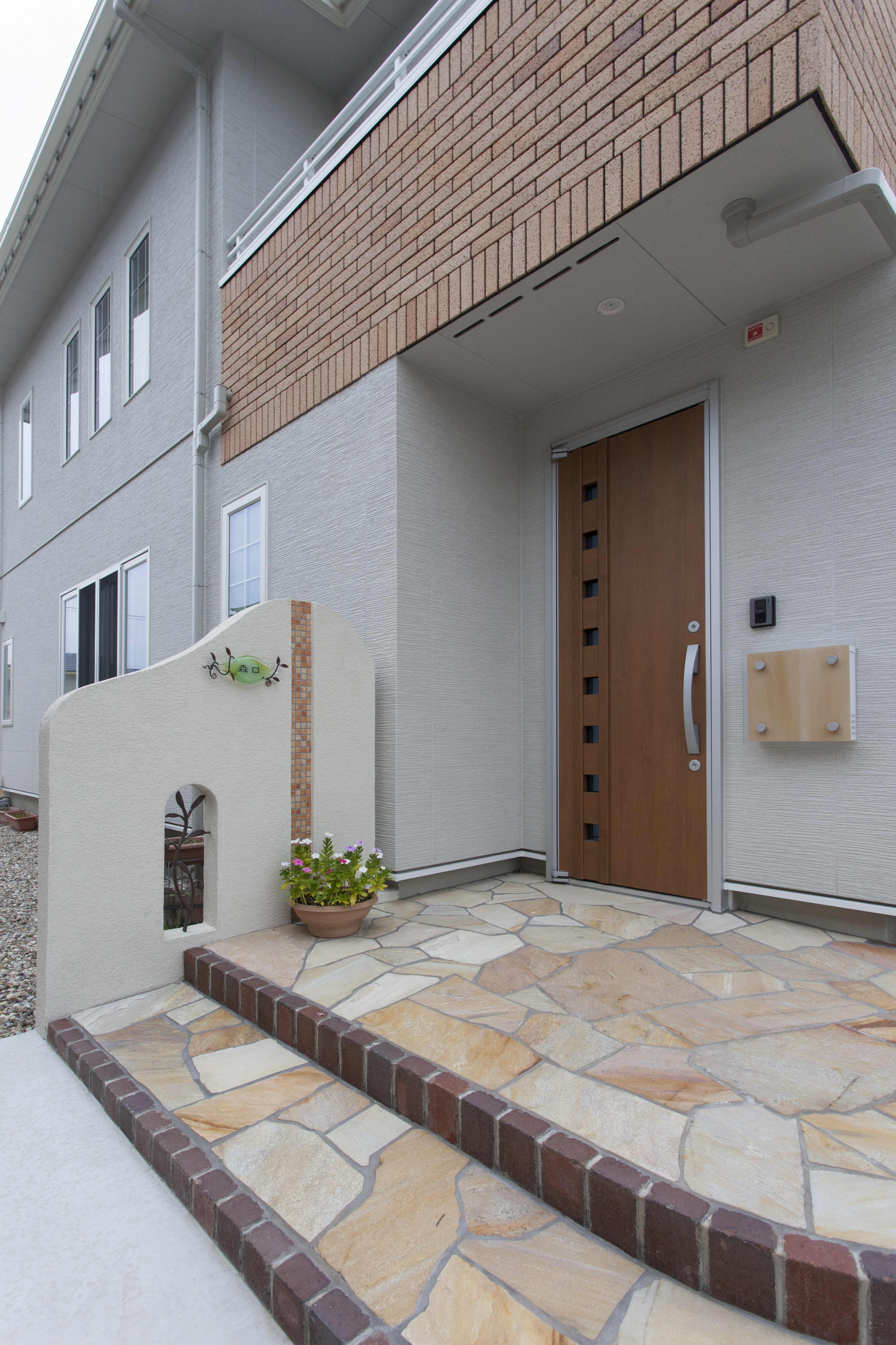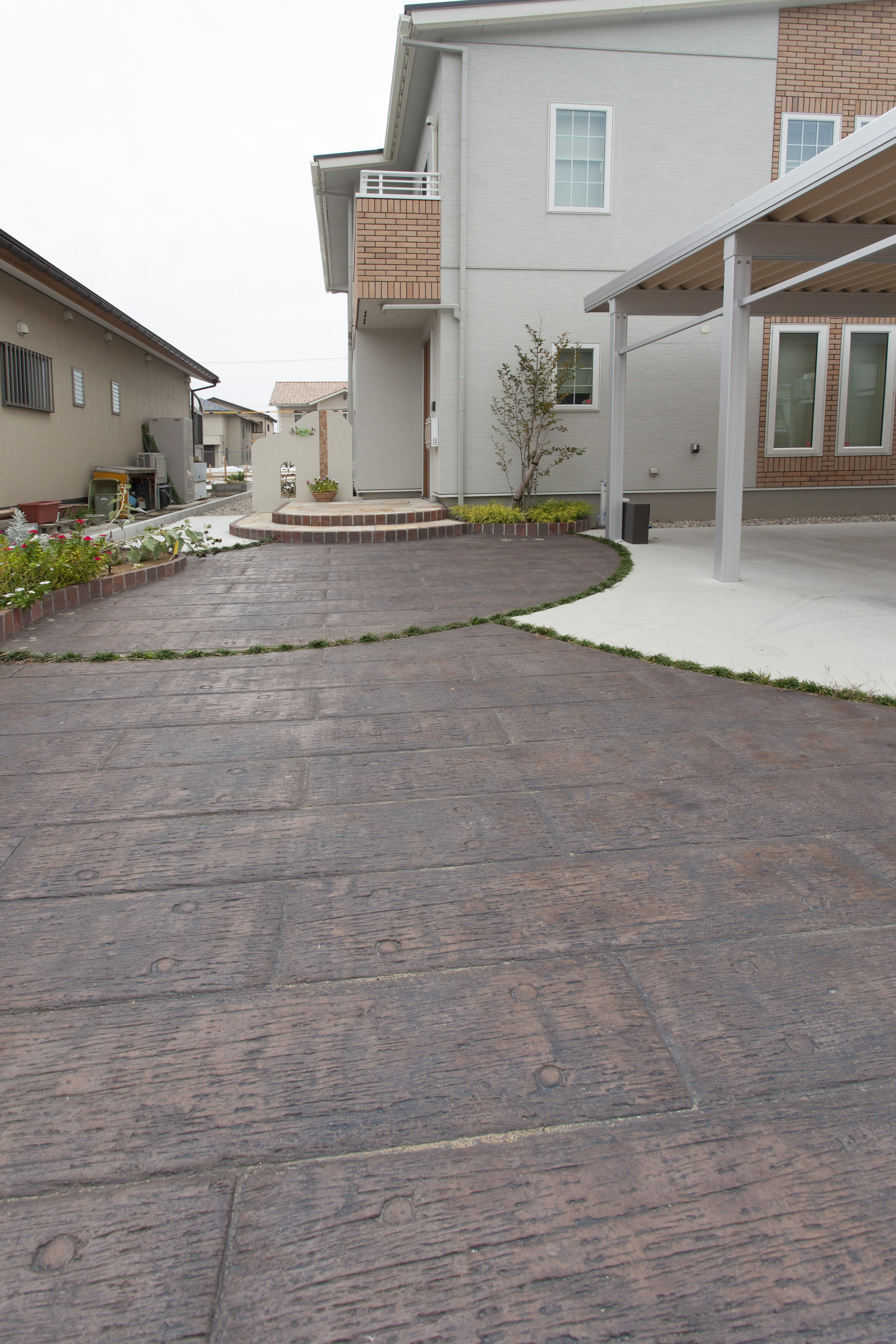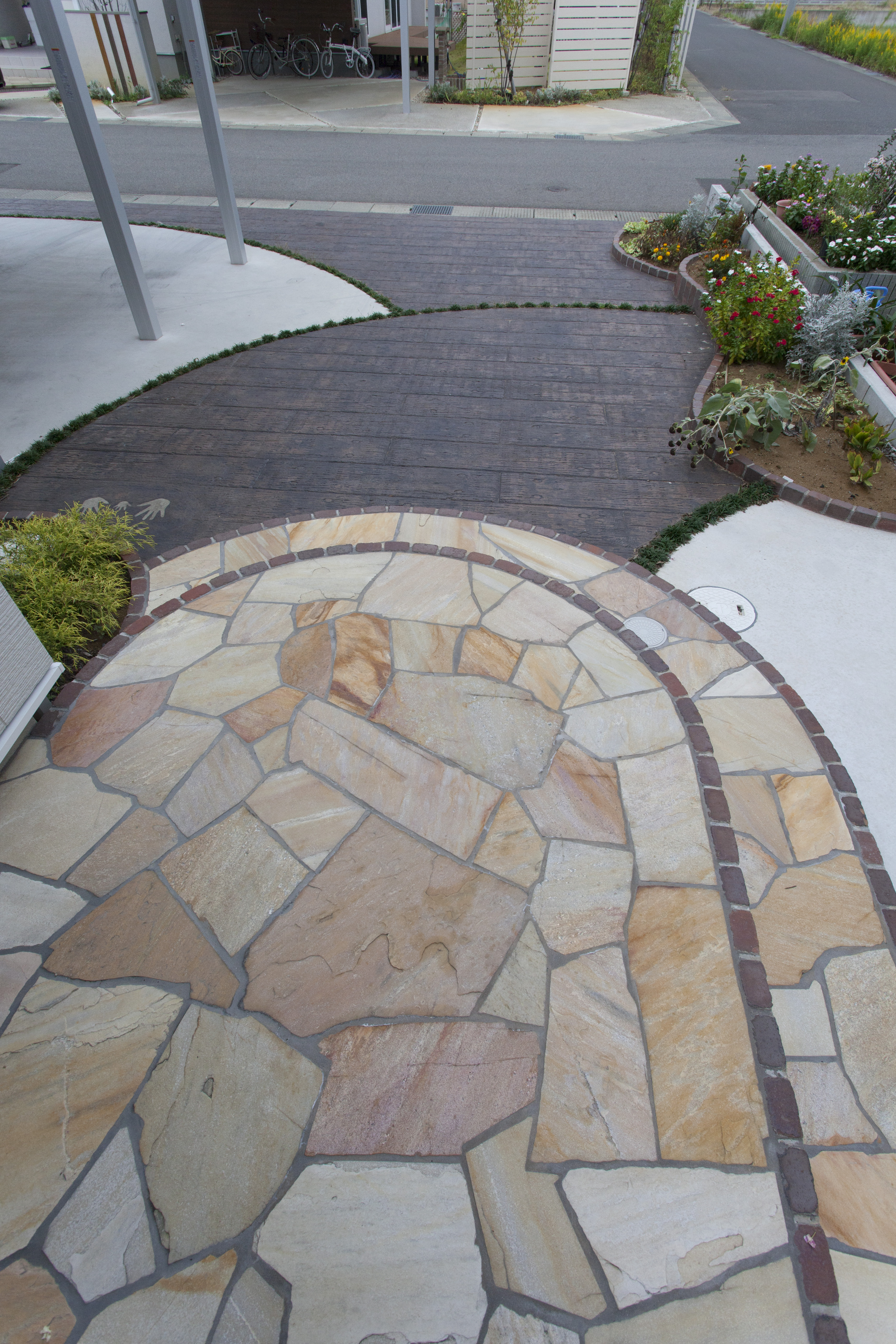 カーポート・物置は元々ついていた為、それに合わせて暖かいイメージに仕上げました。花壇の植栽が趣味でしたのでアクセントになる様に、ソイルレンガを配置。花壇をグッとお洒落に魅せてくれます。
