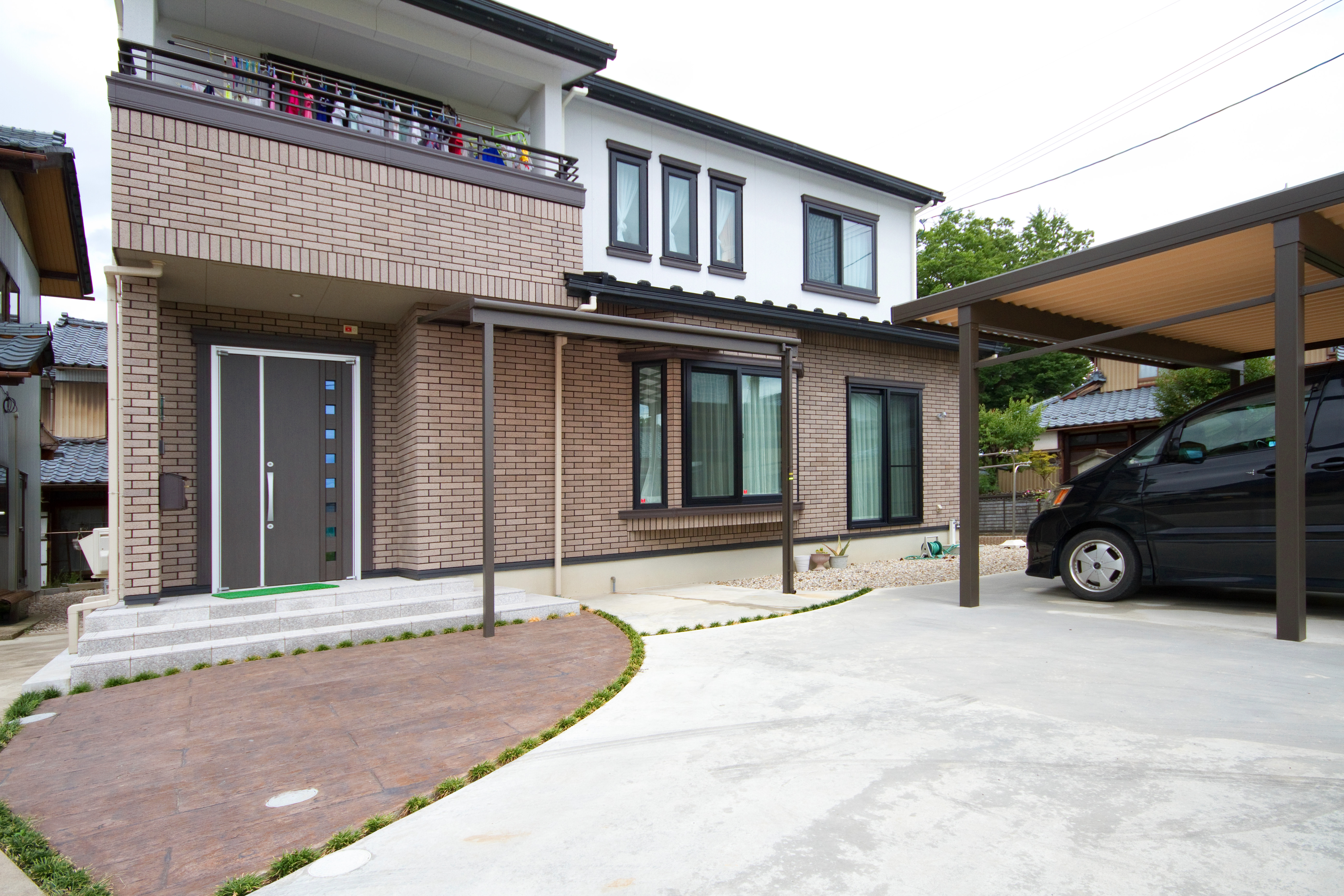 カーポートからの動線は、テラスを設置し雨の日も玄関までスムーズに移動できます。