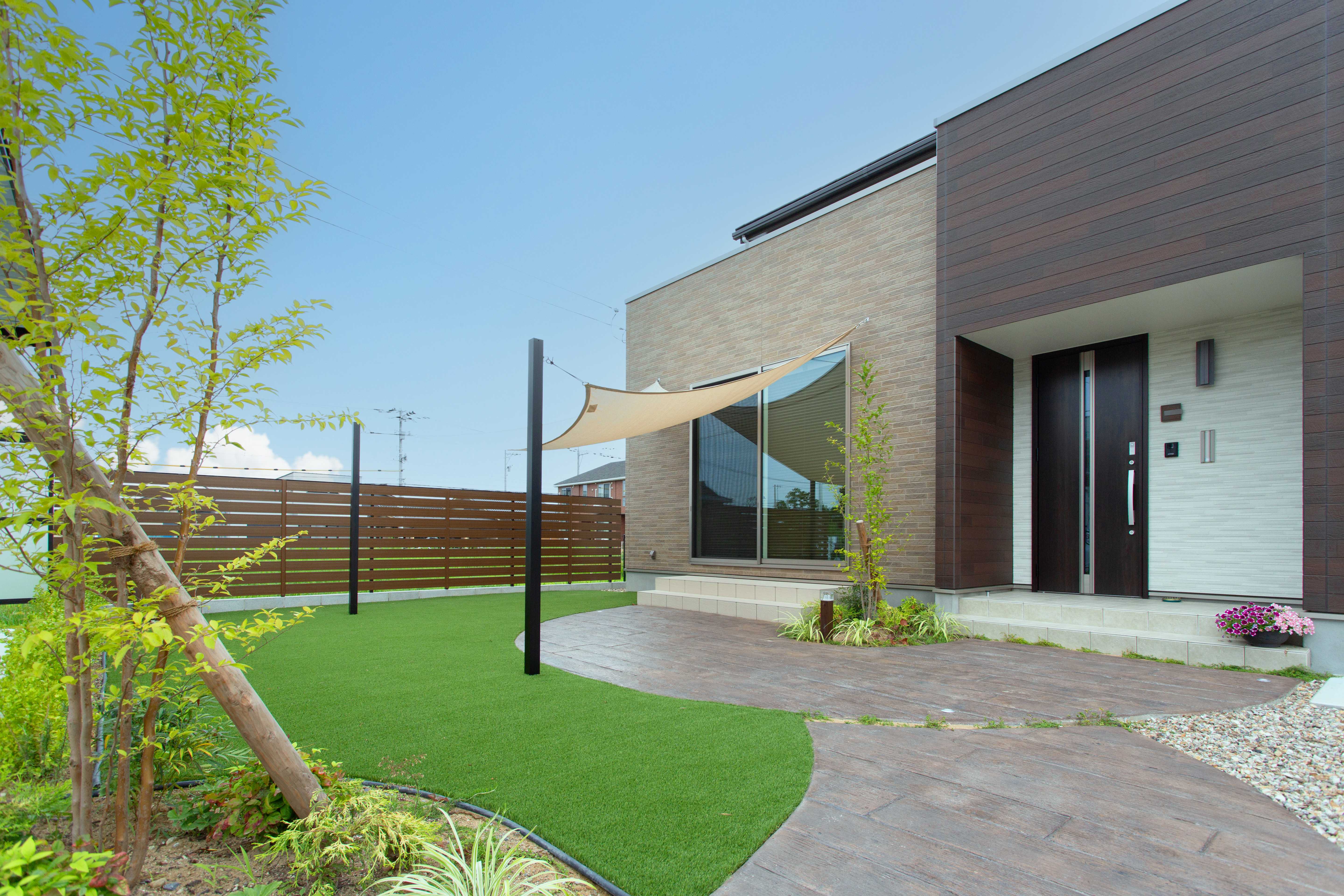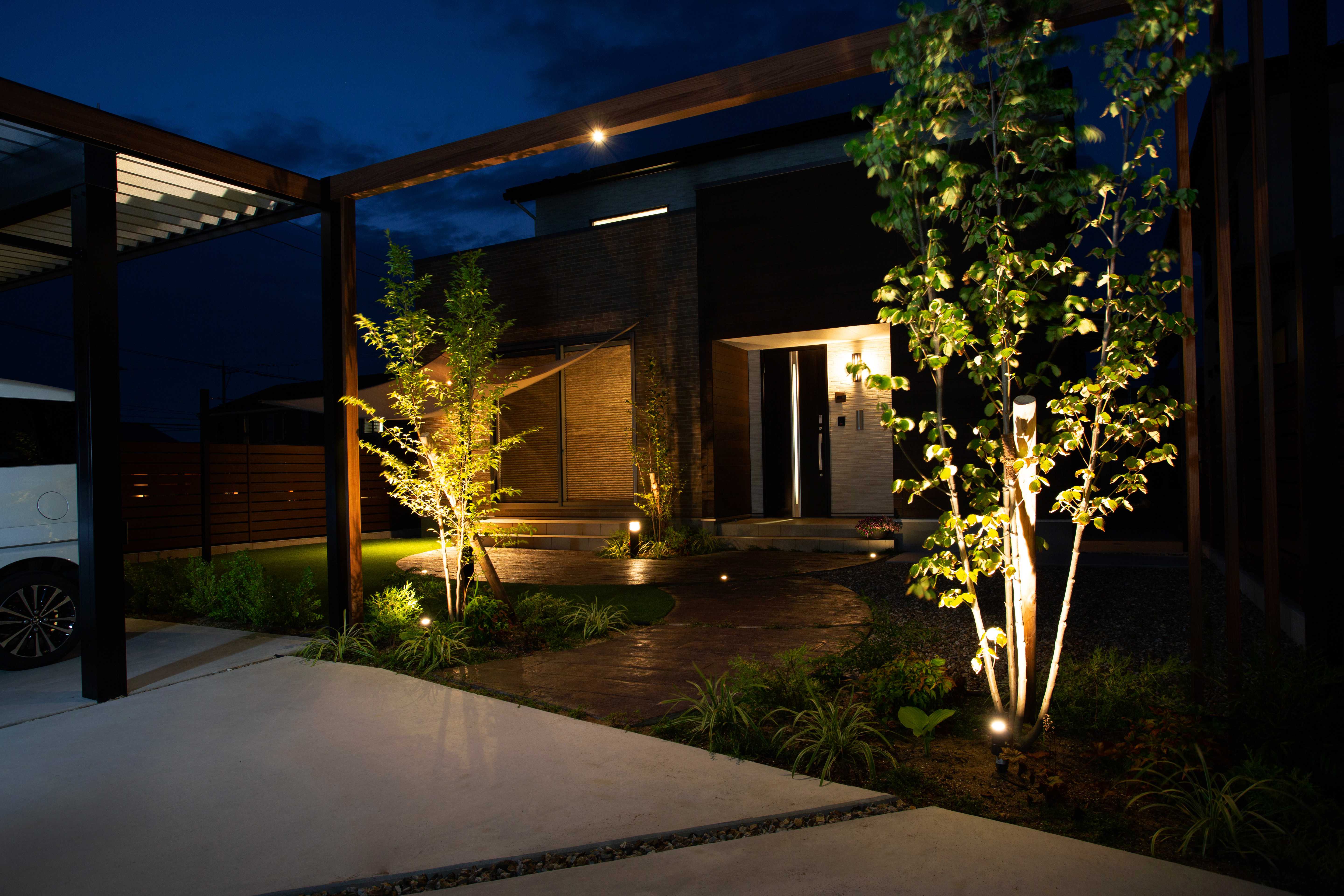 要望は正面にメインとなるお庭とカーポート、ライトアップを含めたトータルエクステリアでかっこよくしたいというご要望です。