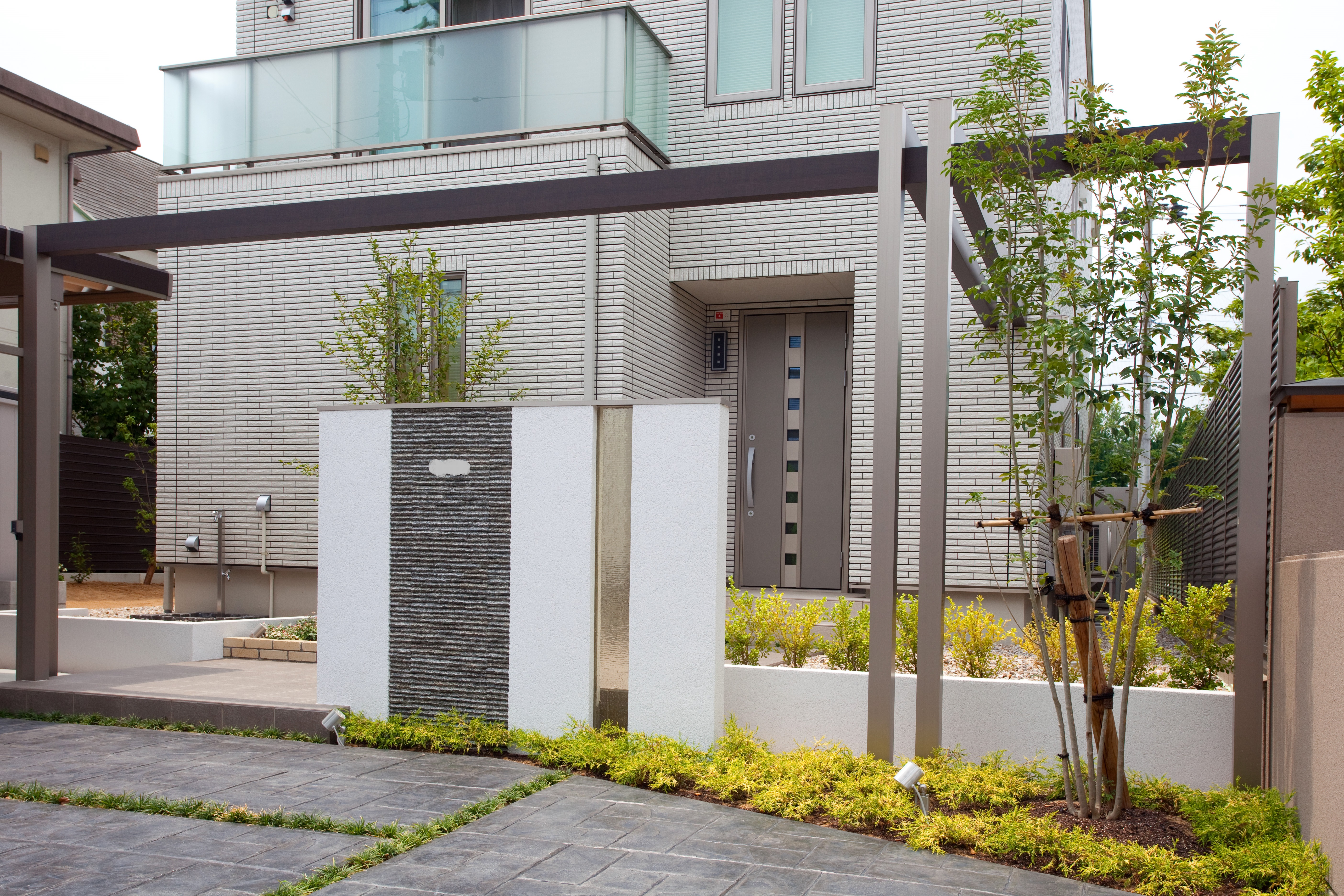 玄関を1歩出て、門柱で一旦視線が塞がれるのでプライバシー管理も◎。