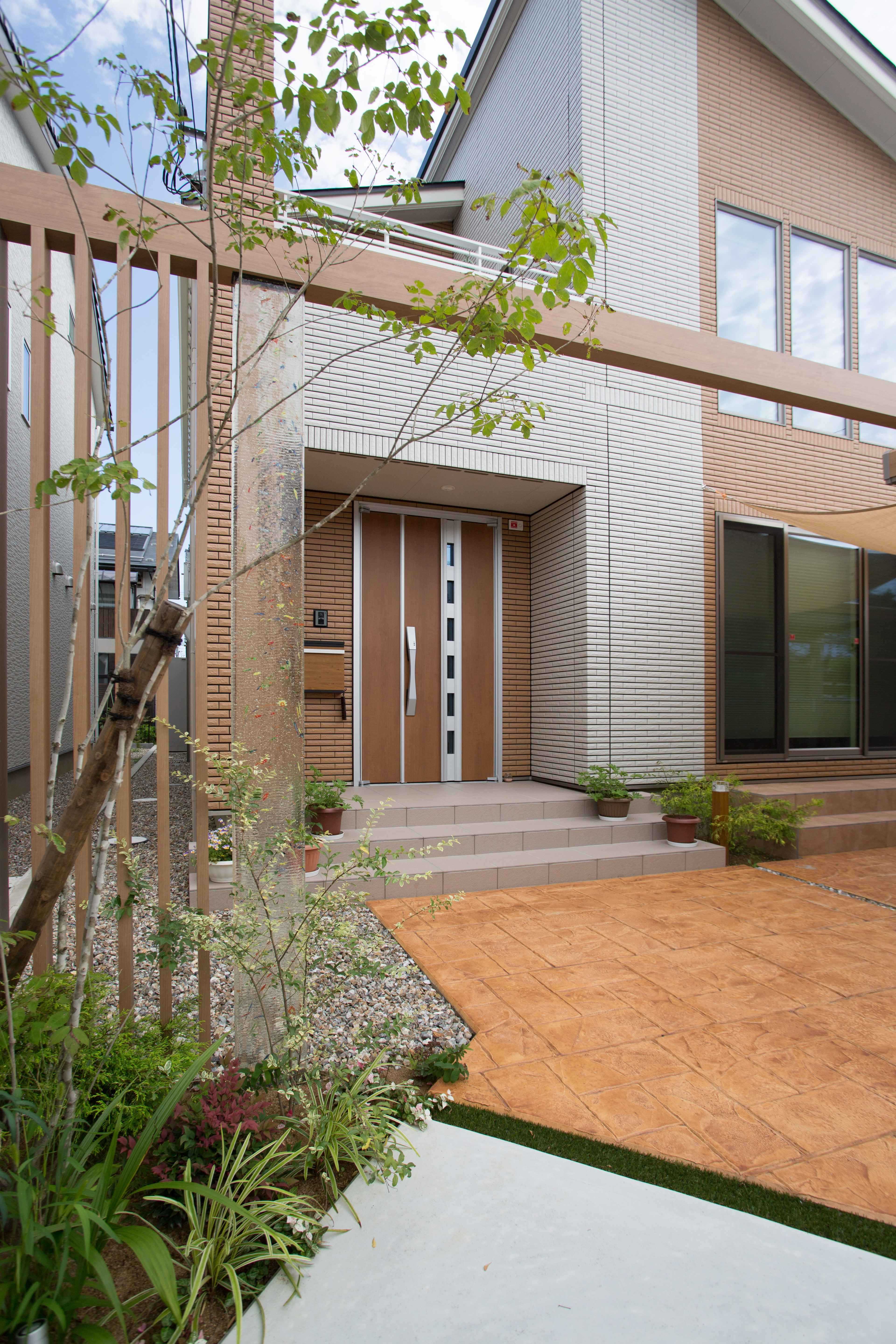 外構もオレンジ色と明るい木調カラーをベースとしてプランしました。
