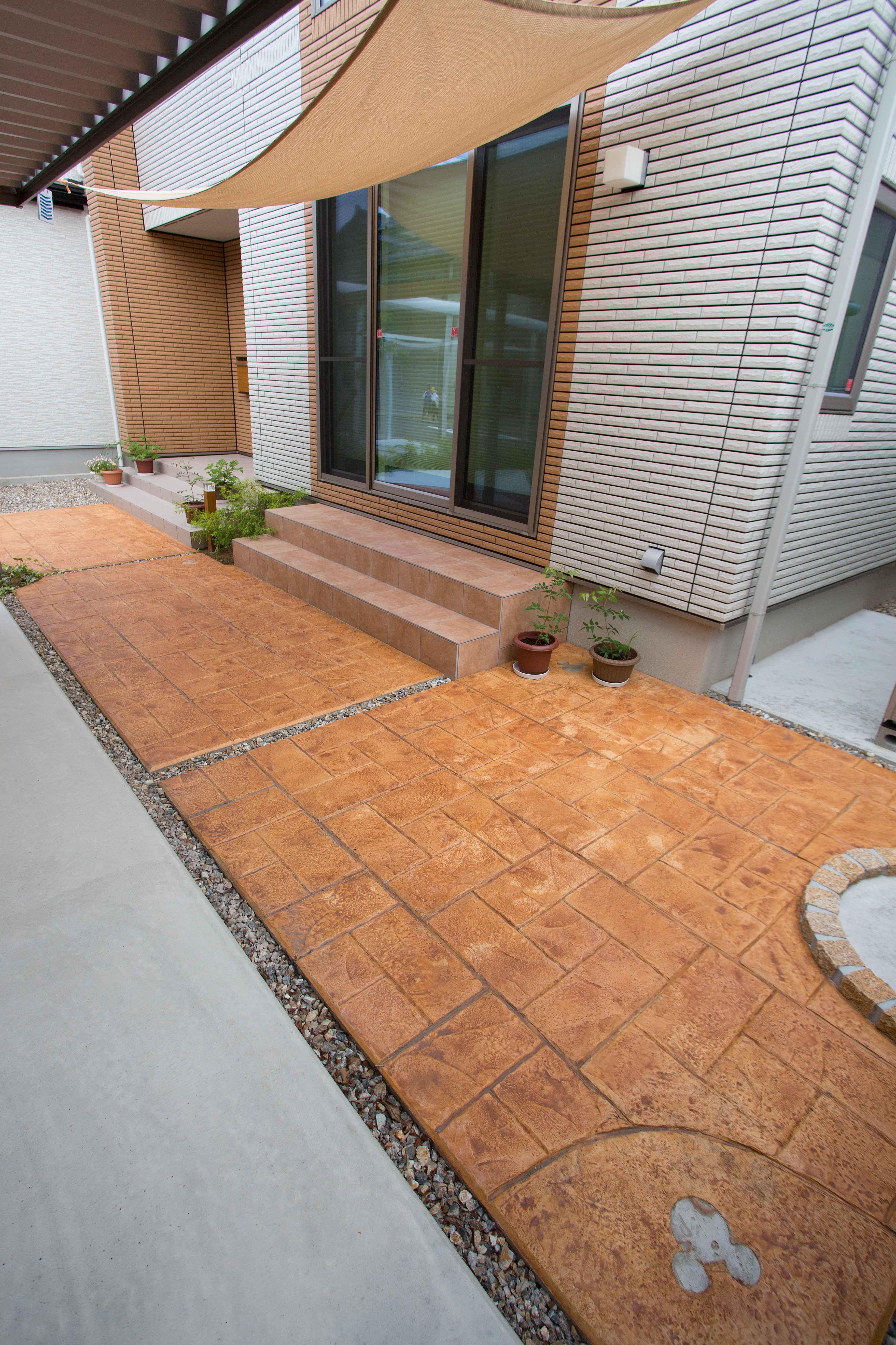 アプローチのマットスタンプ(フレミッシュスレート)の色も合わせました。