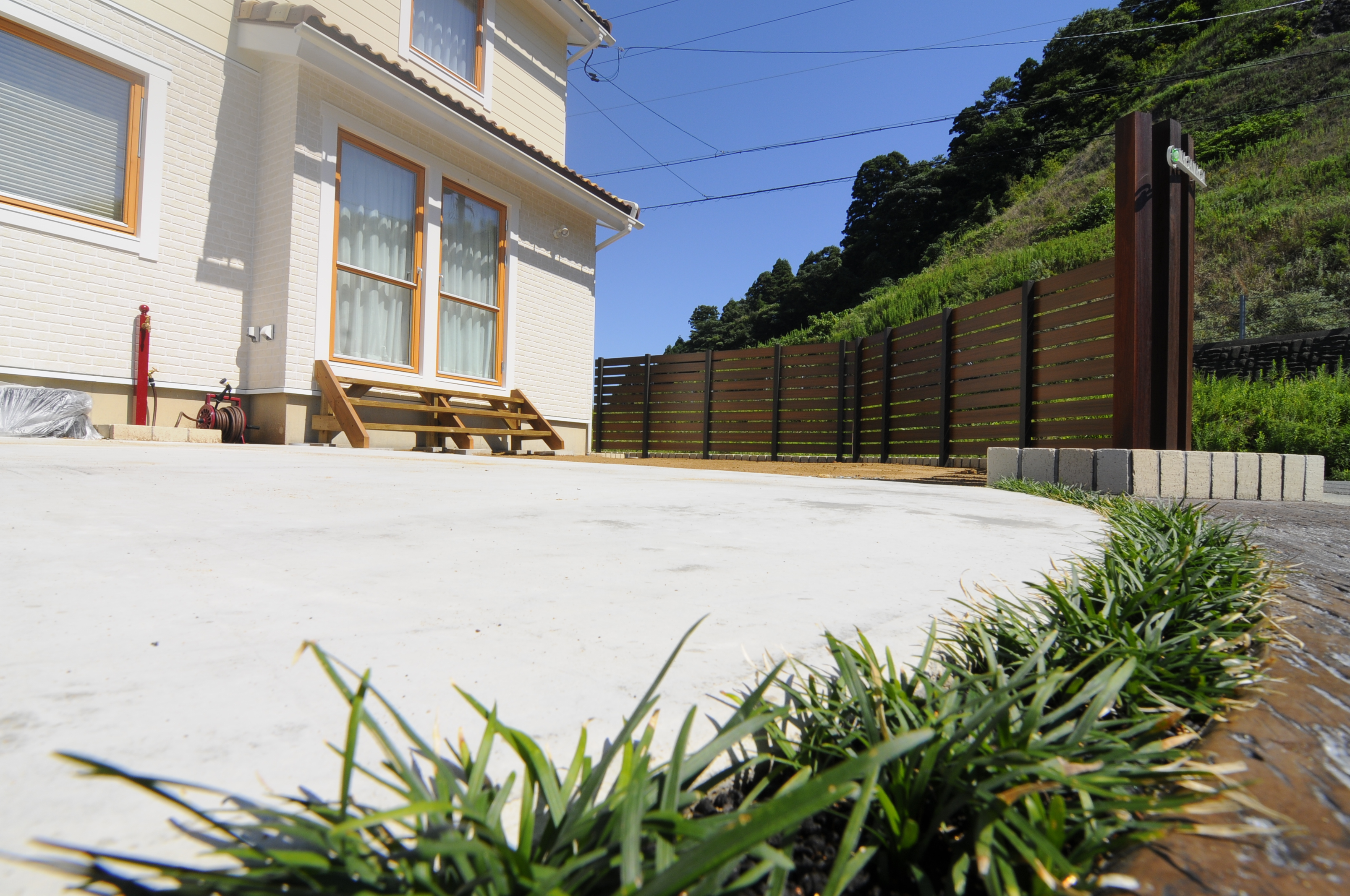 角に立つ一軒家で、目の前には公園もあります。フェンスでのデザインと同時にやはり目隠しを欠かせません。