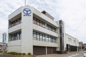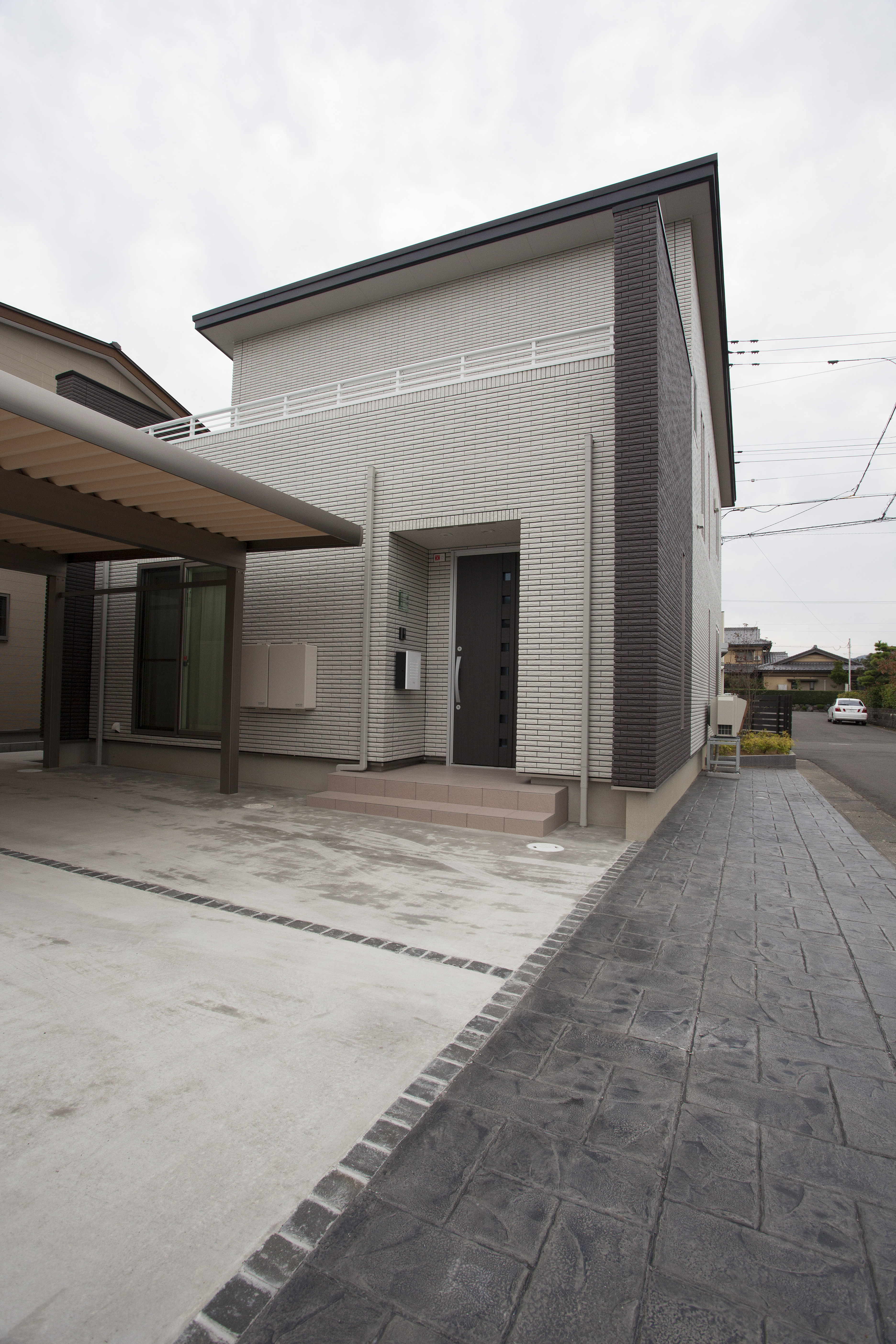 白とブラウンで統一された建物に広くシンプルに施工しました。