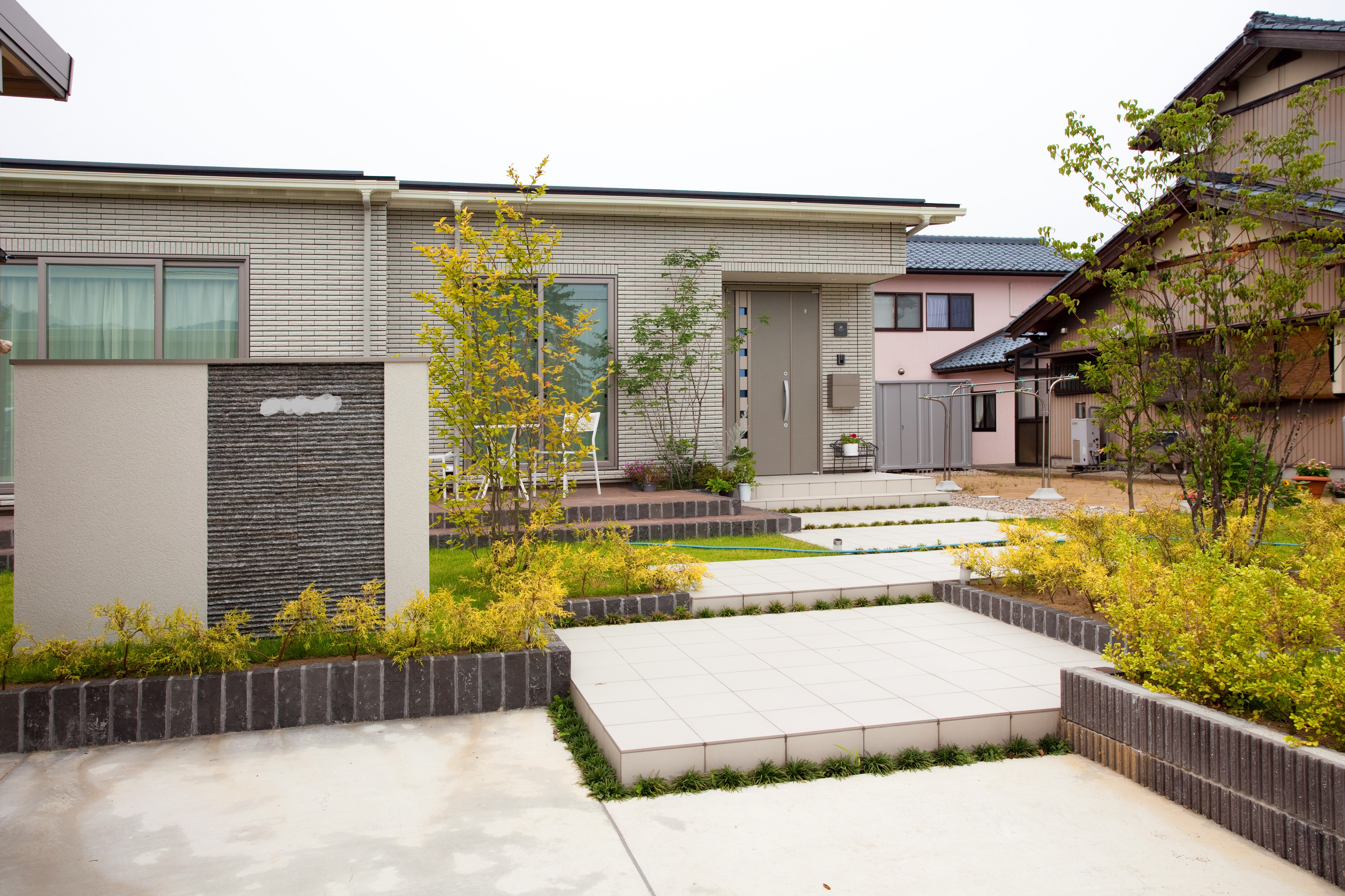 ブラウンを指し色にして、シックでナチュラルな新築外構を完成させました。