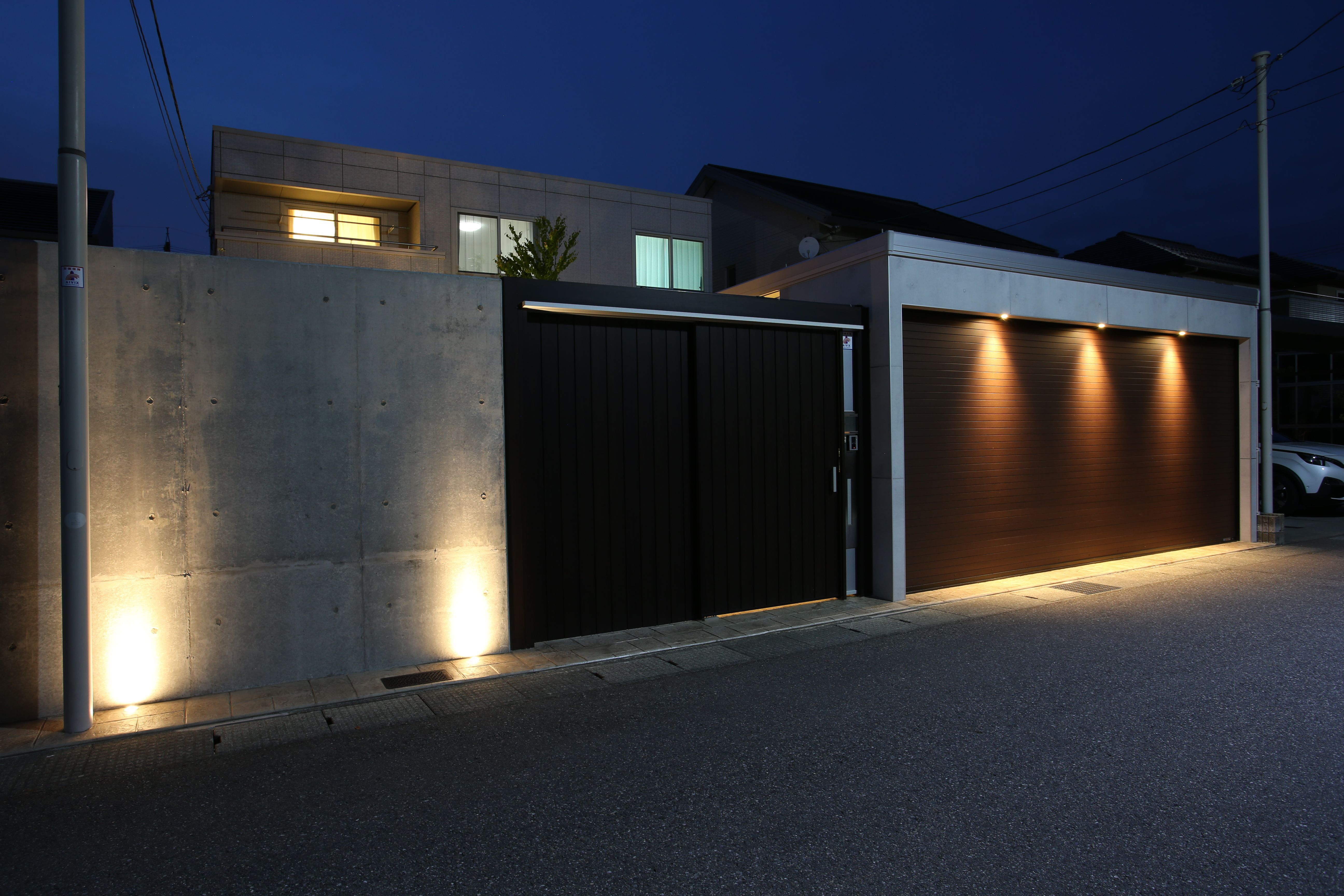 重厚感のあるゲート周りを明るく照らし、防犯にも最適です