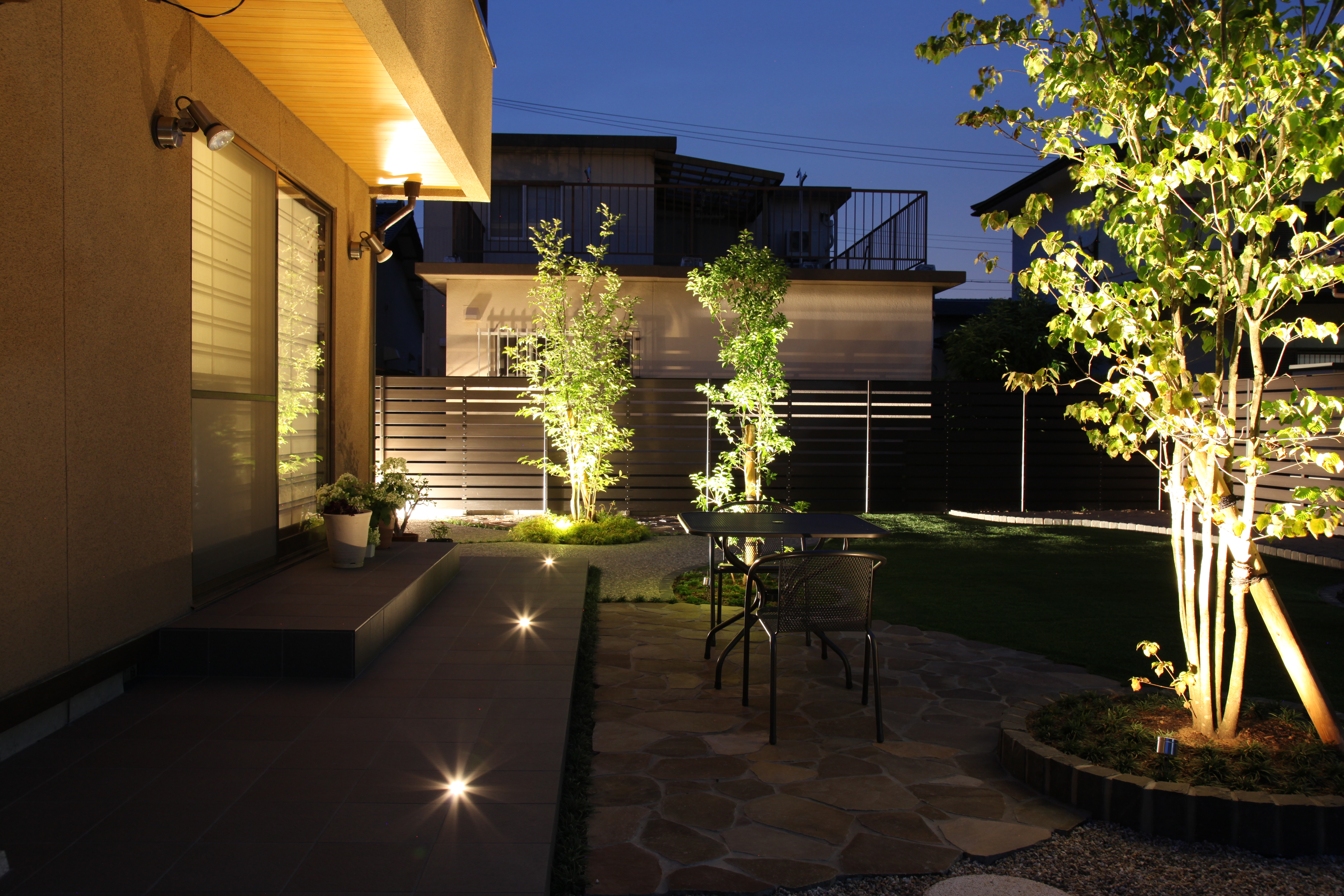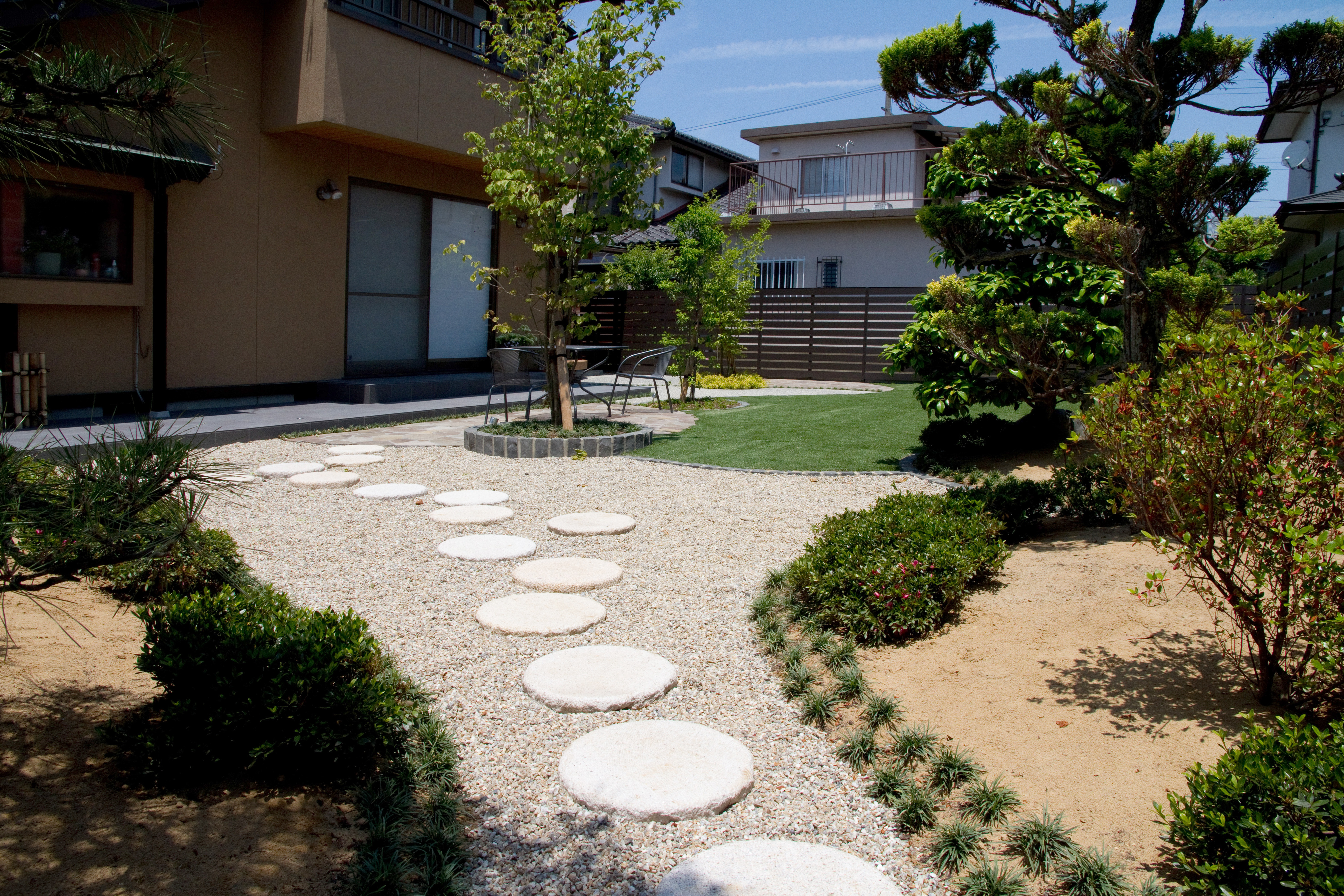 タイルや、植栽を入替えて重厚感のある雰囲気と洋の雰囲気を兼ね備えて施工した和モダンな雰囲気のN様邸。フェンスや壁を使用し、中が見えない様目隠しもほどこしました。中の庭園では、動線をはっきりさせる為天然石を切りデザイン。美しいラインと植栽が見るものを魅了します。デッキではBBQをしながらガーデンを楽しむ事も出来ます。