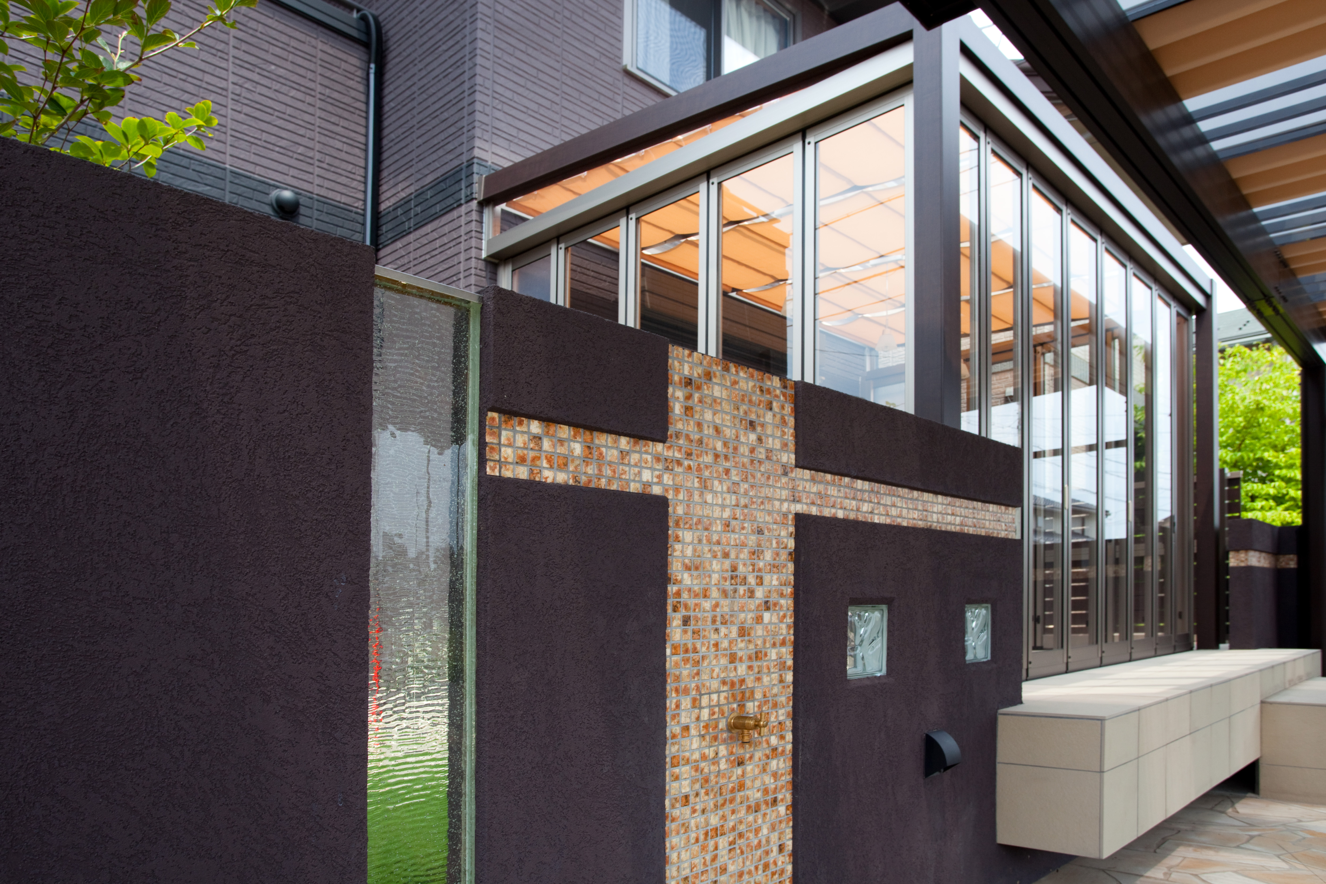 ジーマ ガーデンルーム 塗り壁 石貼り ガラスブロック 洗い出し レンガ花壇