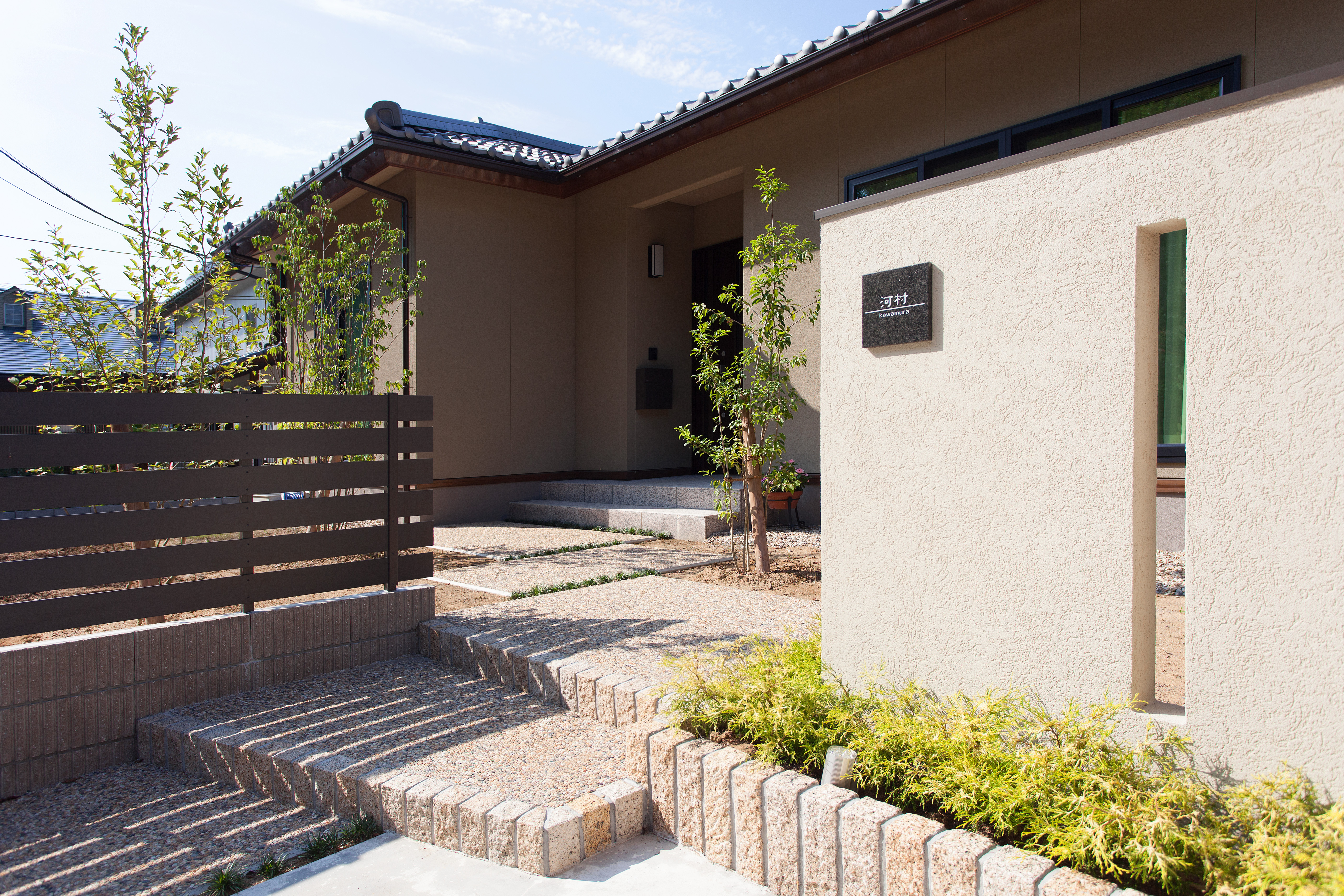 洗い出し アプローチ Bウッドフェンス 塗り壁 ボックスウッド