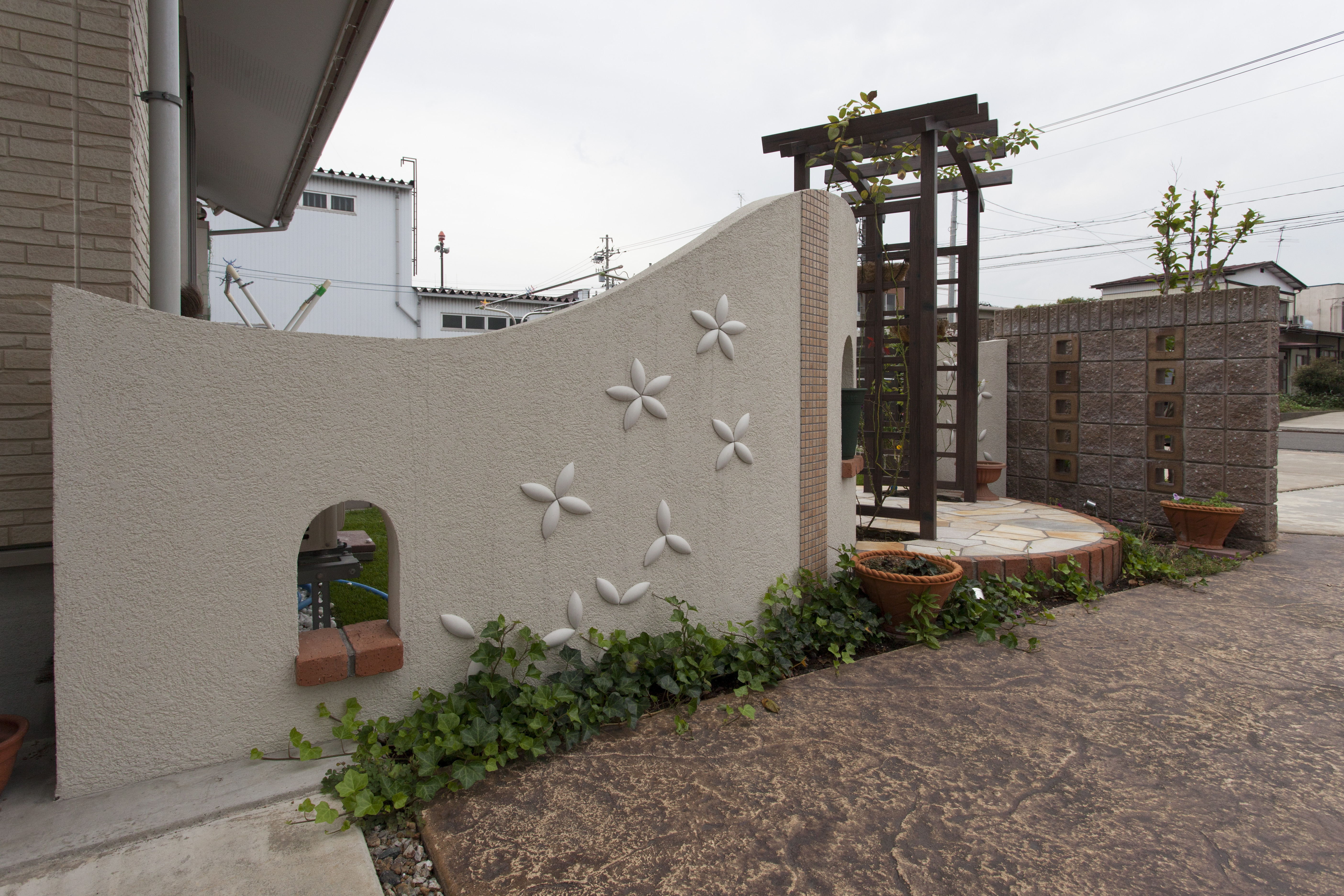 塗り壁 モニュメント Bウッドフェンス 石貼り レンガ花壇