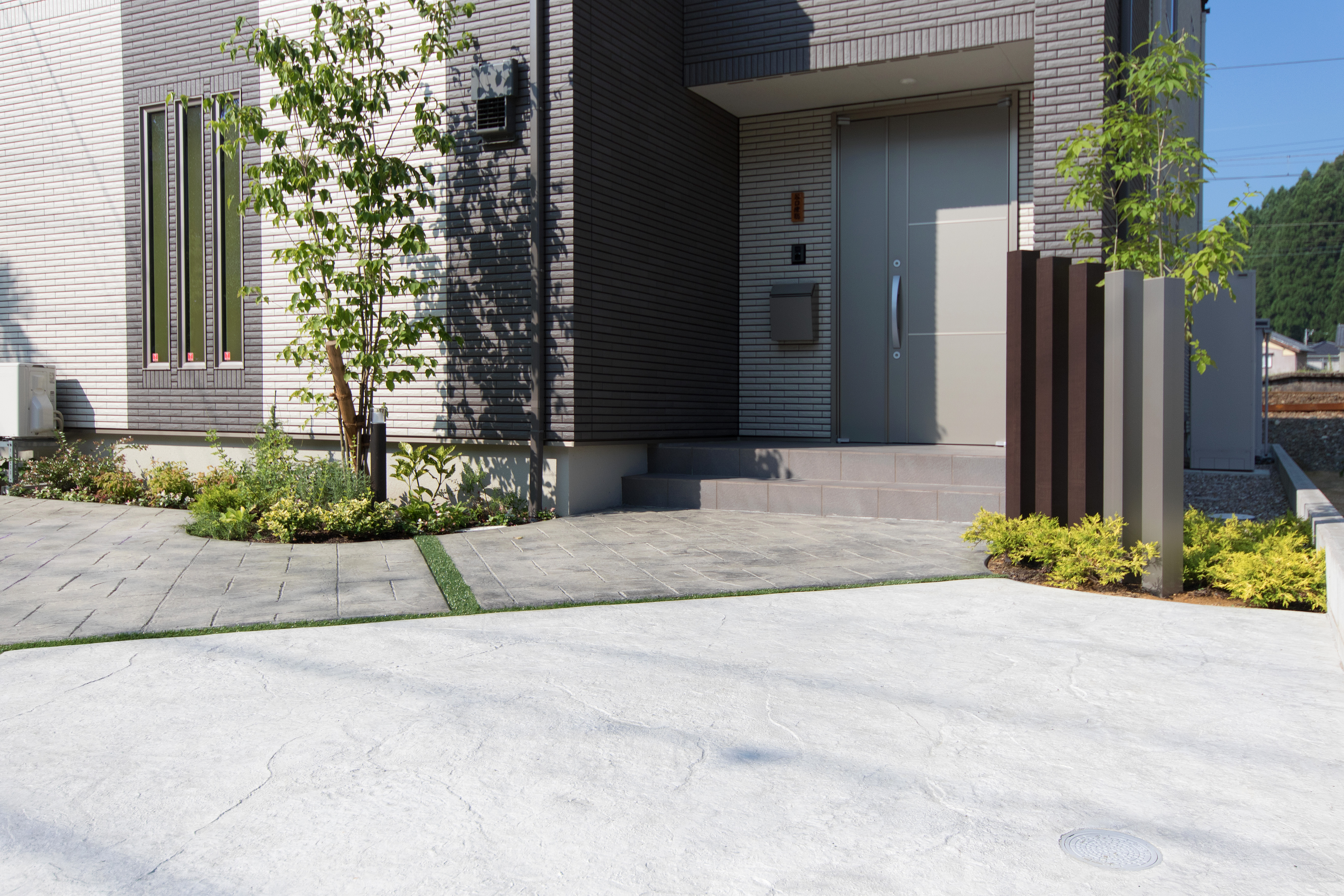 フレミッシュスレート シームレス 100角アルミ柱モニュメント ヤマボウシ株立ち アオダモ株立ち シャラノキ株立ち