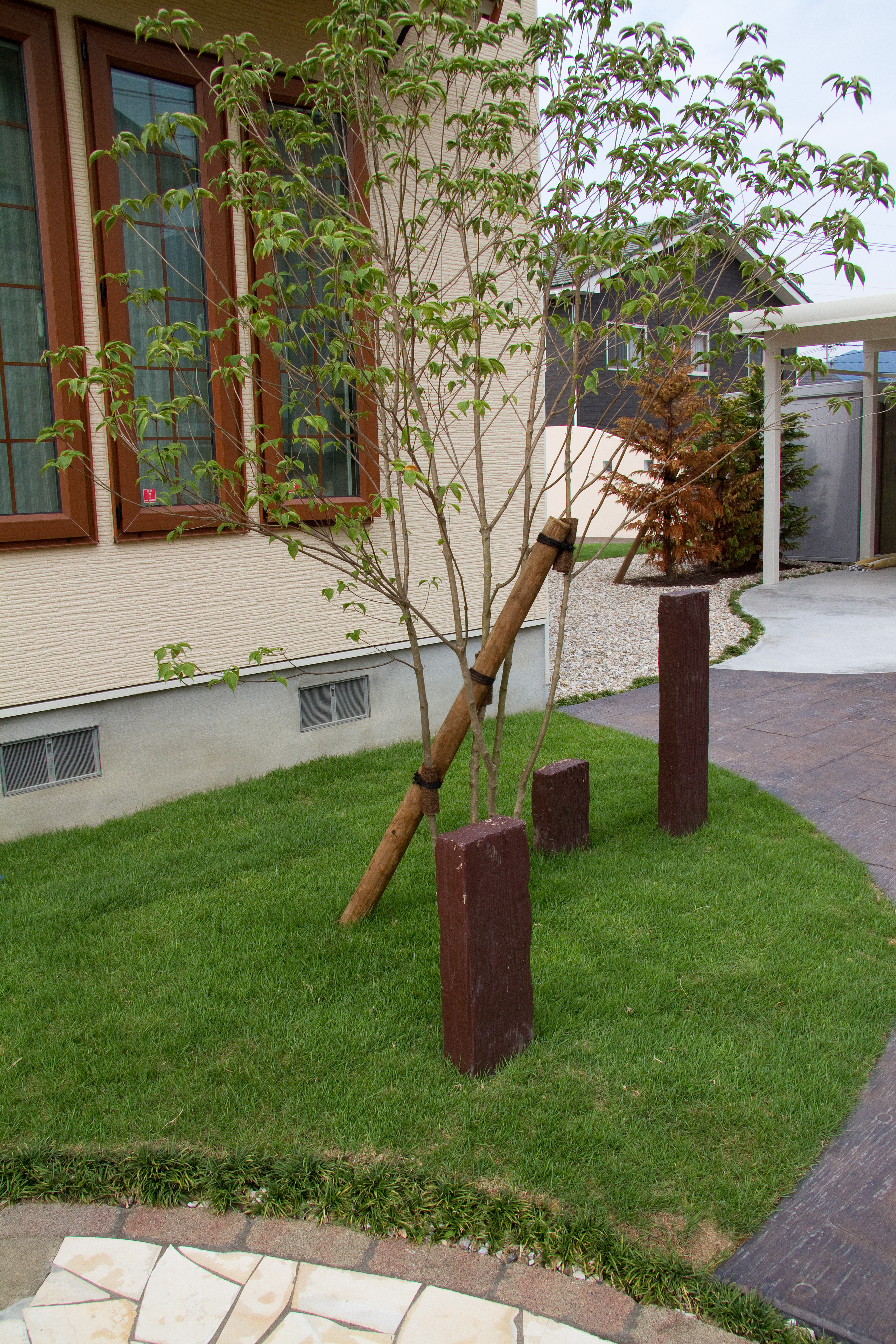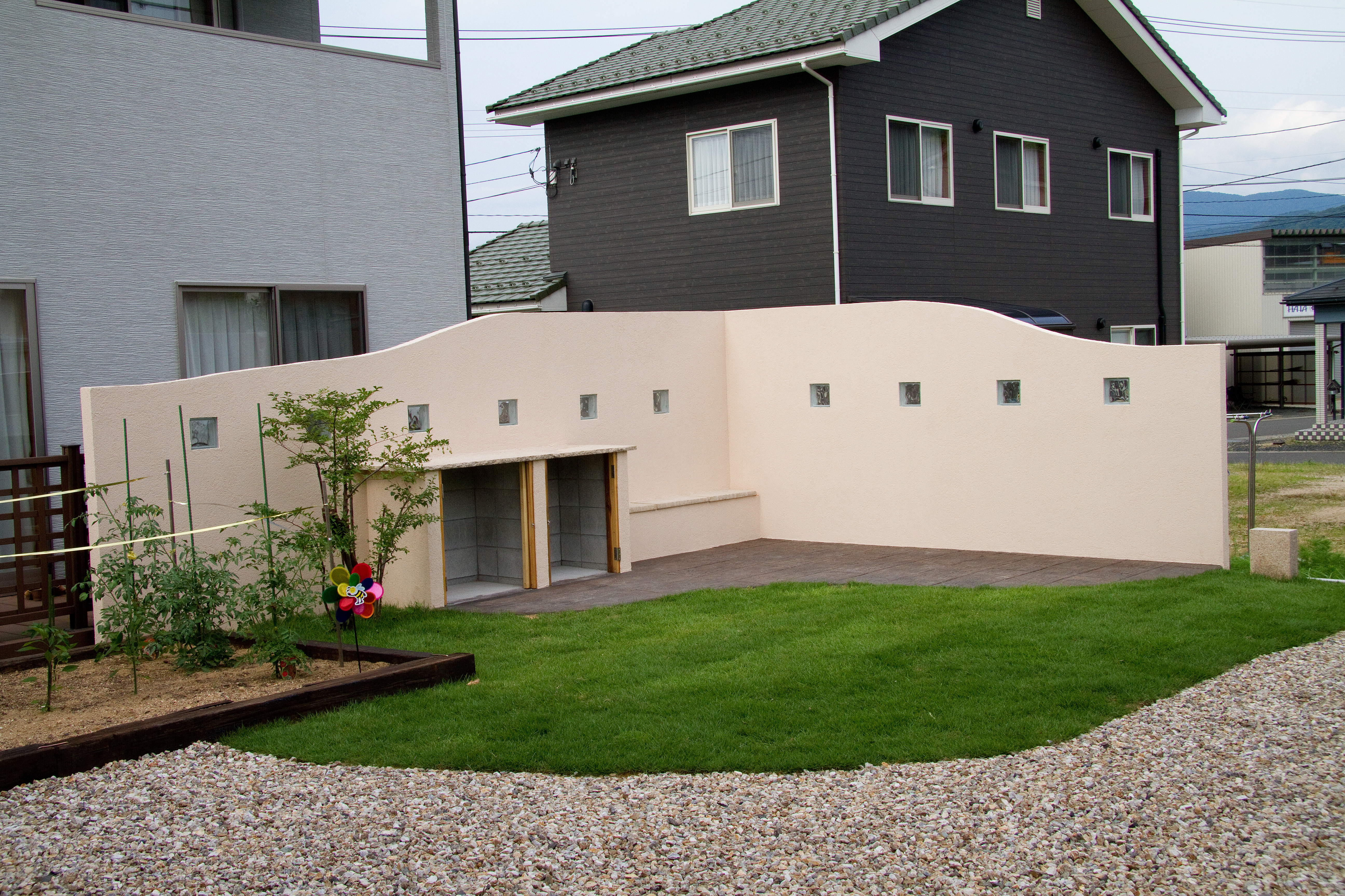 ガラスブロック 枕木 石貼り 洗い出し キッチンガーデン